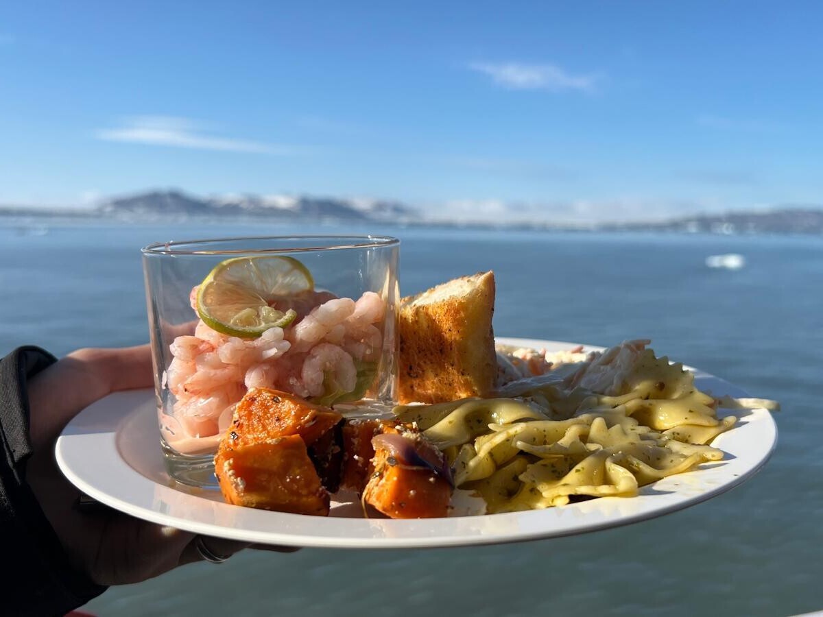 Nach diesem tollen Tag wartete ein wunderbarer Abend auf uns. Die Küche überraschte uns mit einem BBQ an Deck der Hondius. Es war sureal: wir sassen im Sonnenschein, blaue und weisse Eisberge zogen an uns vorbei und wir hatten eine sehr leckere Mahlzeit vor uns. Danach wurde sogar noch etwas getanzt. Was für ein Leben.