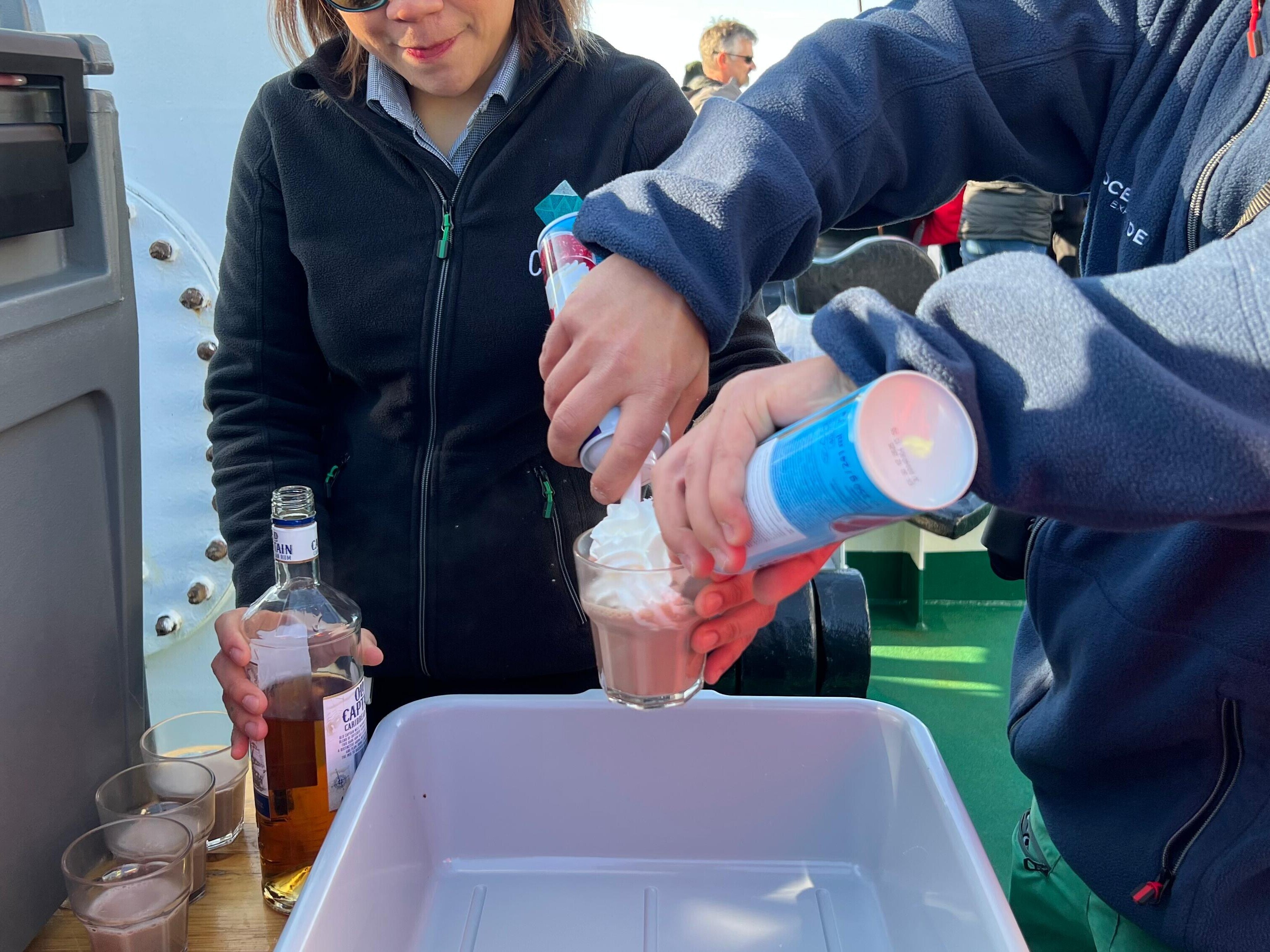 Den Abend verbrachten wir an Deck, da es so schön sonnig war und wir einen grandiosen Blick auf Bråsvellbreen hatten. Dies ist mit zirka 180 Kilometer die längste Eisklippe der nördlichen Hemisphäre. Dieser Anblick machte viele sprachlos. Als Tüpfchen auf dem i wurden wir hier noch mit einer heissen Schokolade verwöhnt.