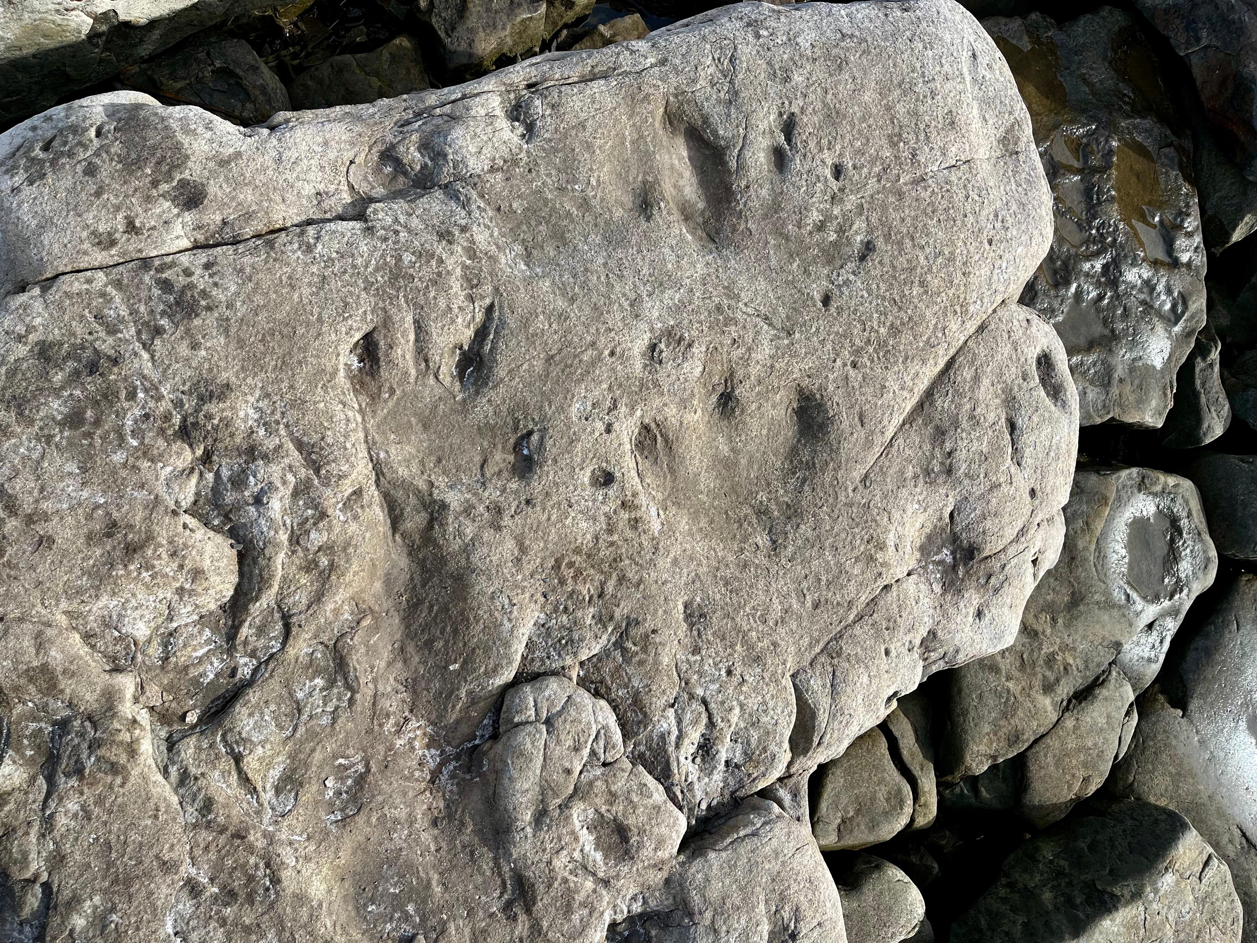 Wir hatten Glück und konnten diesen eindrücklichen Ort besuchen. In den Klippen direkt am Strand werden uns von den Guides ganz spezielle Spuren gezeigt. Diese rund 30 Zentimeter grossen Fussstapfen sind zirka 100 bis 150 Millionen Jahre alt und stammen vom Iguanodon Dinosaurier.