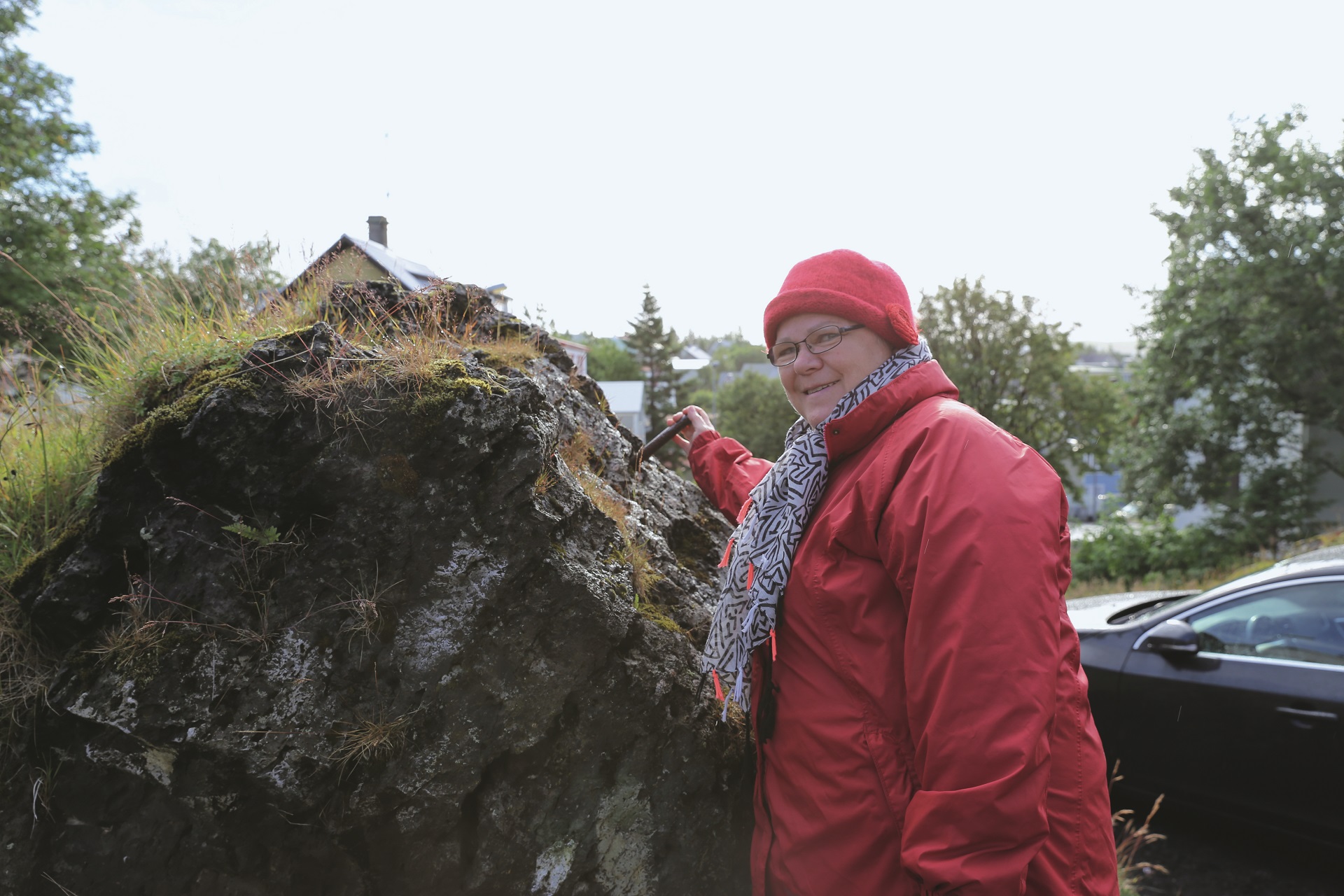 Die Eisenstange ragt noch immer aus dem Felsen, seit 1920. Damals machten sich Arbeiter daran, den Stein zu zersplittern, um Platz für ein Haus zu schaffen. Wie gewohnt plauderten und scherzten sie dabei, doch sie verstummten schnell. Irgendetwas stimmte hier nicht. Kein Brocken löste sich vom Stein, nicht der kleinste. Sie schüttelten irritiert den Kopf, arbeiteten verbissen weiter, kraftvoll und schnell. Plötzlich ein Aufschrei: eine Stange verschwand im Innern des Steins. Dann noch eine und noch eine, schliesslich eine bis zur Hälfte. Entsetzt starrten die Arbeiter auf ihre leeren Hände. Was ging hier vor? In diesem Moment kam ein alter Einheimischer die Strasse runter, nickte wissend und rief ihnen zu: «Hört auf, hier wohnen Elfen. Ihr geht jetzt besser.» Die Arbeiter sahen sich verblüfft an und zogen dann unverrichteter Dinge ab. «Seither hat sich niemand mehr an diesem Elfenstein zu schaffen gemacht», schliesst Geschichtenerzählerin und Elfenstadtführerin Sigurbjörg Karlsdóttir, die von allen Sibba genannt wird, ihre Erzählung.