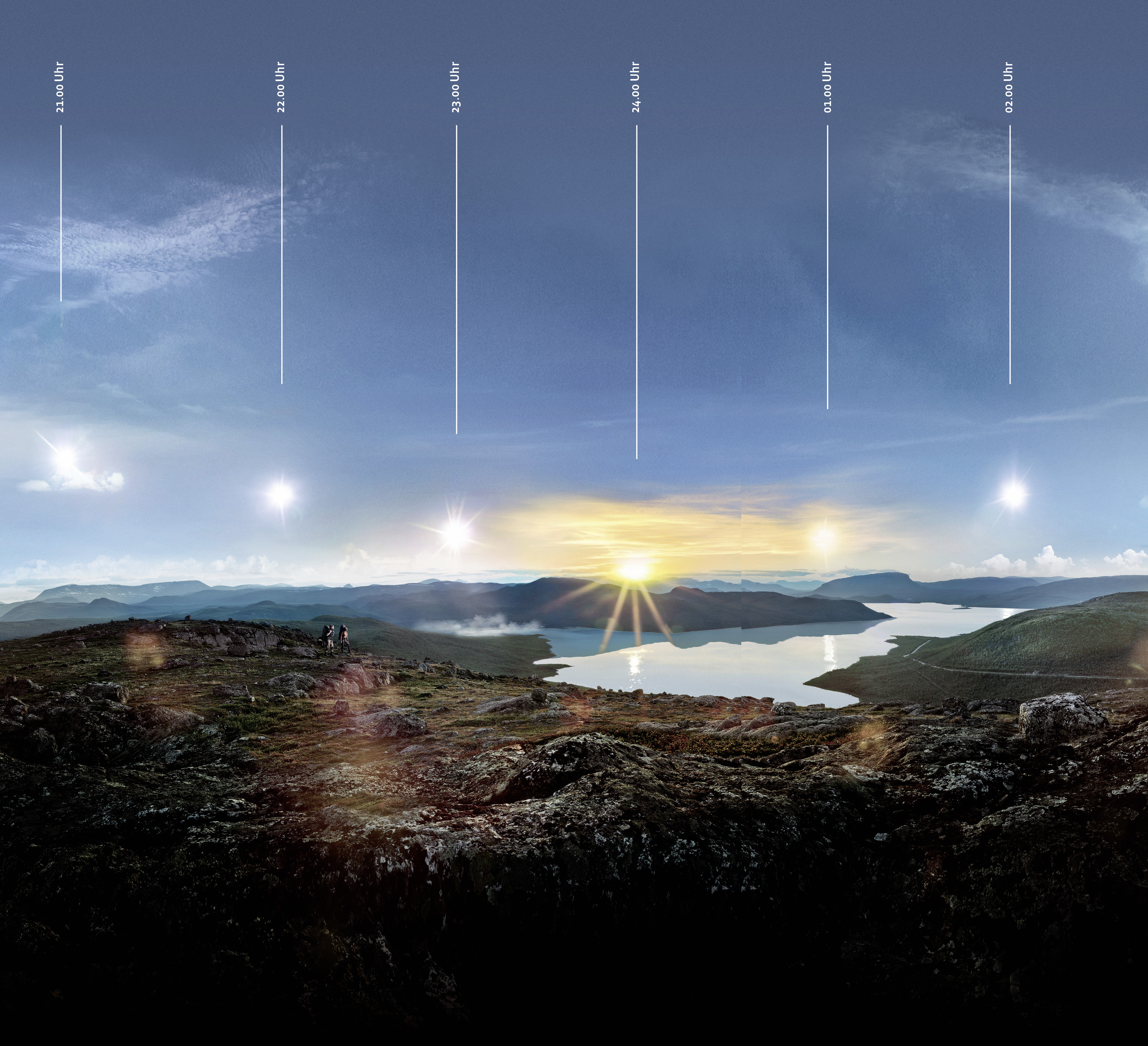 24 Stunden Sonne am Tag? Was wie ein Traum klingt, wird nördlich des Polarkreises jedes Frühjahr Realität. Dann beginnt das kurze Glück der langen Tage, die intensive Zeit des doppelten Geniessens. Denn nächtliche Vergnügen ohne Kunstlicht gibt es viele im Norden: Ein Mitternachtsbad im kleinen See, gemütlich auf der Blockhausveranda sitzen und einen Krimi lesen oder gar durch die nicht enden wollenden Wälder wandern. Doch wie ist das möglich? Wieso geht die Sonne nicht unter? Grund dafür ist die Neigung der Erdachse zur Erdumlaufbahnebene von ungefähr 23 Grad. Beim Frühlingsbeginn steht die Sonne exakt senkrecht über dem Äquator und bescheint von dort sowohl Nord- als auch Südpol. Im Laufe des Frühlings wandert die Sonne weiter nach Norden und strahlt so über den Nordpol hinweg auf die andere Seite der Erde. Wenn in Finnland Mitternacht ist, scheint die Sonne von Norden über den Pol. Im hohen Norden bleibt sie während dieser Zeit also stets über dem Horizont. Aber auch unterhalb des Polarkreises sind die Tage um die Sonnenwende am 20. oder 21. Juni spürbar länger. Zwar geht die Sonne kurz unter – aber nur, um gleich danach wieder aufzugehen. Übrigens, je weiter nördlich Sie sich befinden, desto länger können Sie das Spektakel und diesen Sommernachtstraum erleben.
