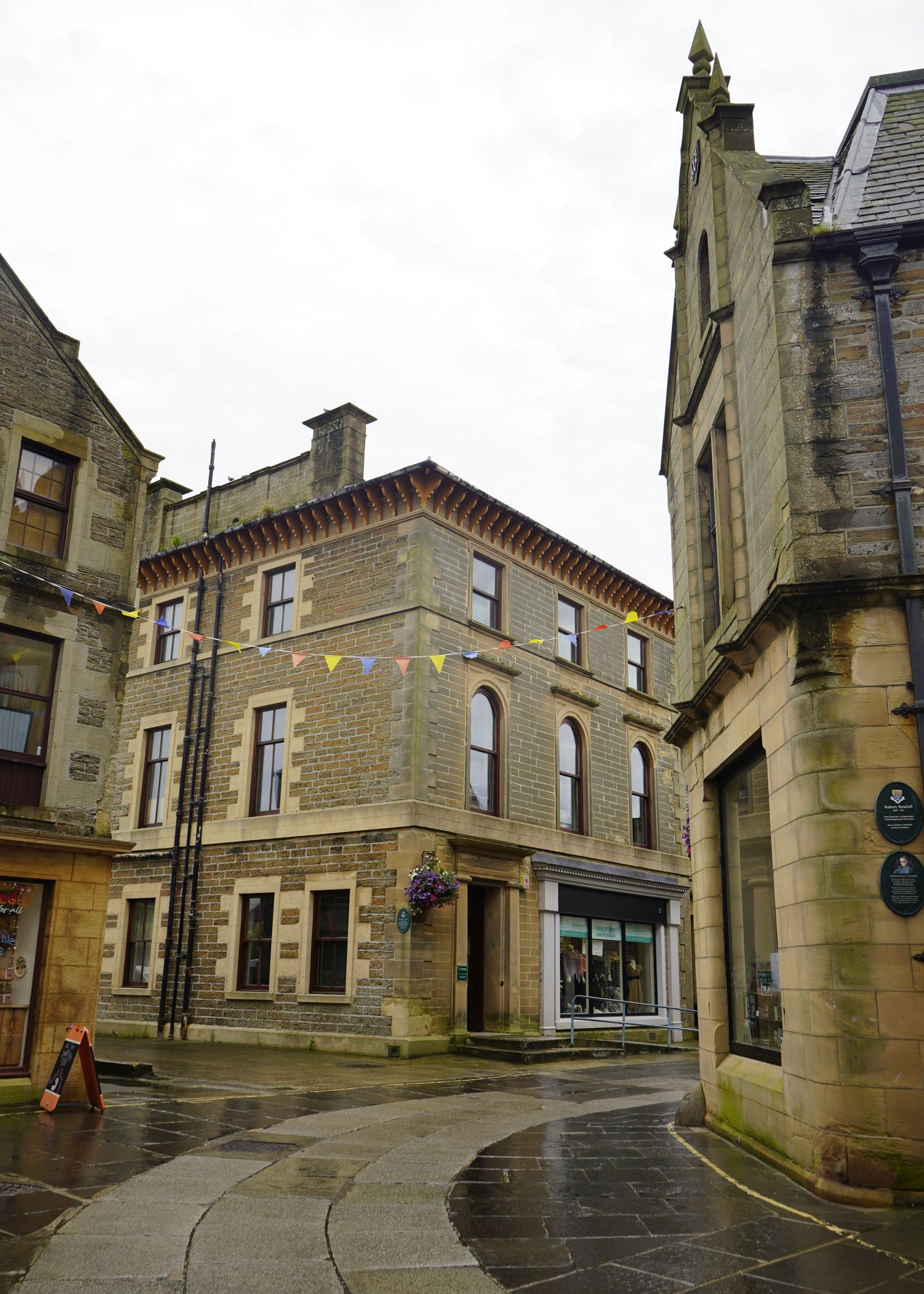 L'après-midi, un groupe visite le Broch sur l'île de Mousa, une tour de pierre vieille de 2000 ans qui était utile aux hommes à l'époque, reste à savoir à quoi elle sert aujourd'hui - habitation, poste d'observation ? Les autres se sont rendus au village de Hoswick, où certaines ont fait une provision de bonnets ou de gants, pendant que d'autres ont acheté de la laine pour se tricoter, car le prochain hiver ne manquera pas d'arriver. Mais pas aujourd'hui, en cette merveilleuse et douce journée d'automne, que nous avons mise à profit après l'excursion pour nous promener dans les ruelles étroites de Lerwick. Nous aimons ces massives maisons victoriennes en pierre et les Lodberries, ces petits entrepôts de l'époque hollandaise qui servent aujourd'hui le plus souvent de maisons d'habitation chics.