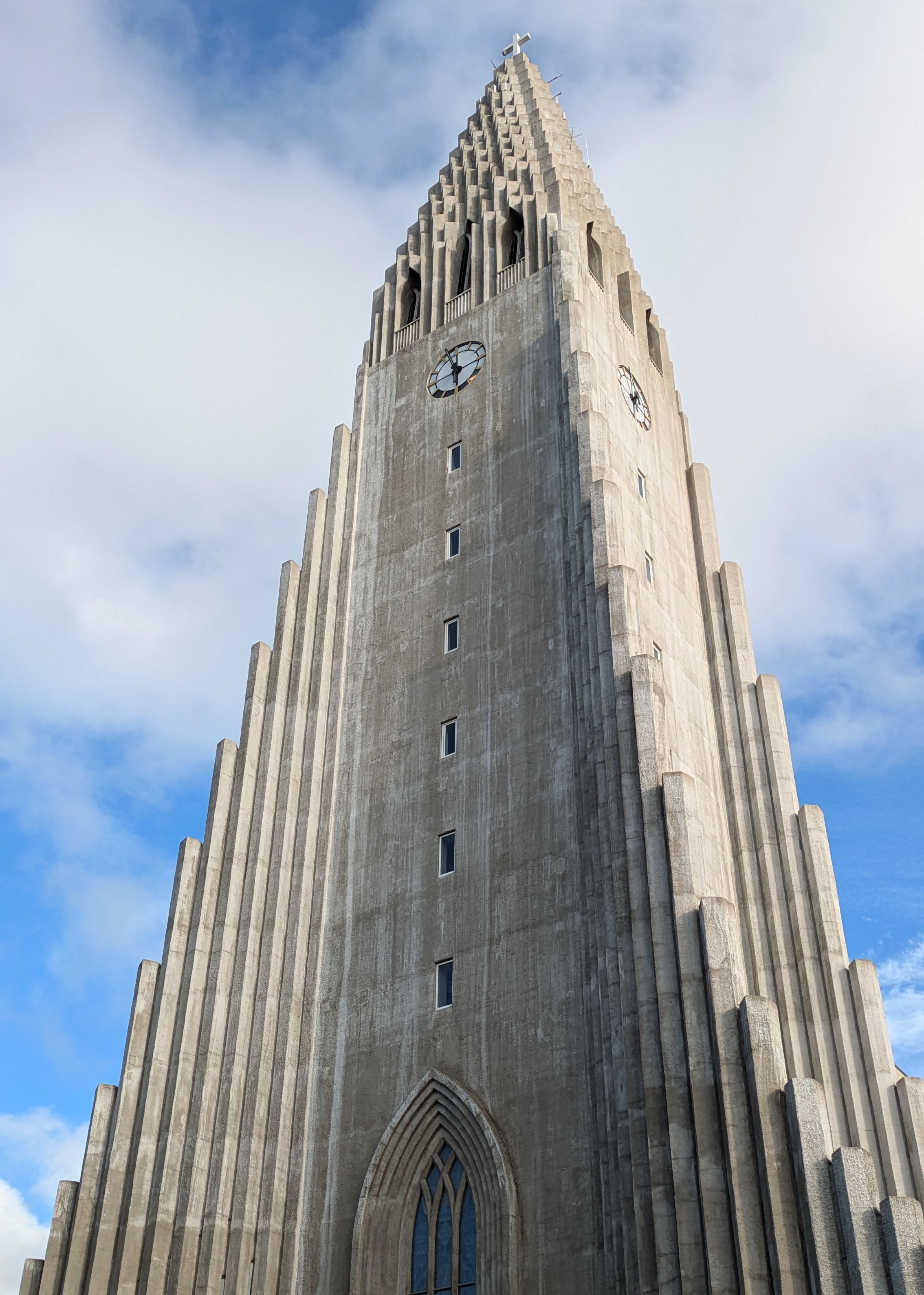 Un excellent début pour notre voyage qui nous mènera de l'Islande à l'Écosse en passant par les îles Féroé. En traversant l'étrange paysage de lave de la péninsule de Reykjanes, nous apercevons au loin, avec l'aide de nos guides, les nuages de cendres de l'actuelle éruption volcanique et apprenons de nombreux détails intéressants sur la région et Reykjavik, la capitale islandaise. Par exemple, le fait que le Premier ministre travaille dans un bâtiment qui servait à l'origine de prison - un lieu de travail vraiment inhabituel. Bien entendu, un arrêt à l'emblème de Reykjavik, la Hallgrímskirkja, s'impose. Les colonnes blanches de l'église rappellent les formations basaltiques que l'on trouve dans la nature islandaise. Nous nous arrêtons également à la salle de conférence et de concert Harpa pour admirer les vitraux scintillants de toutes les couleurs de l'arc-en-ciel.