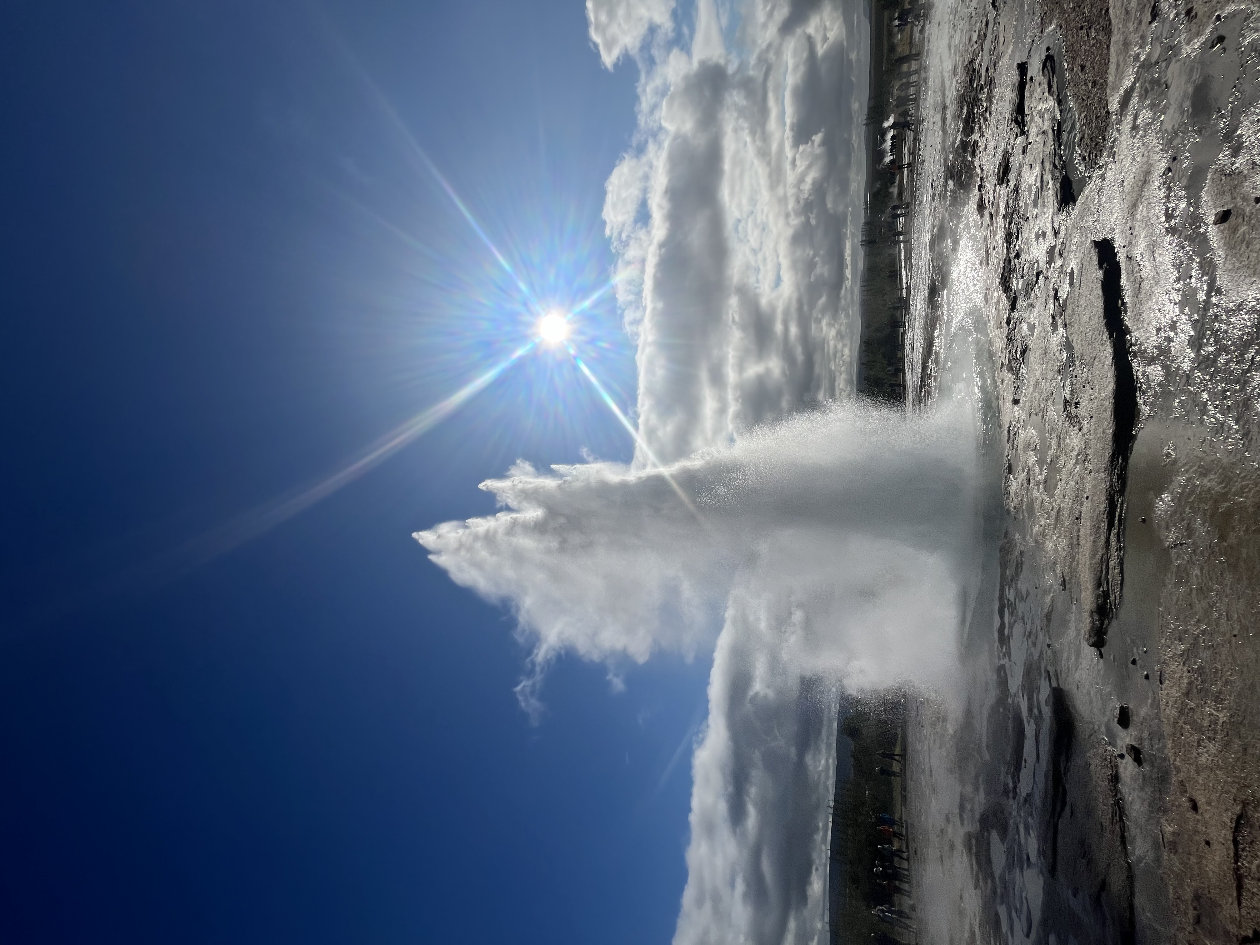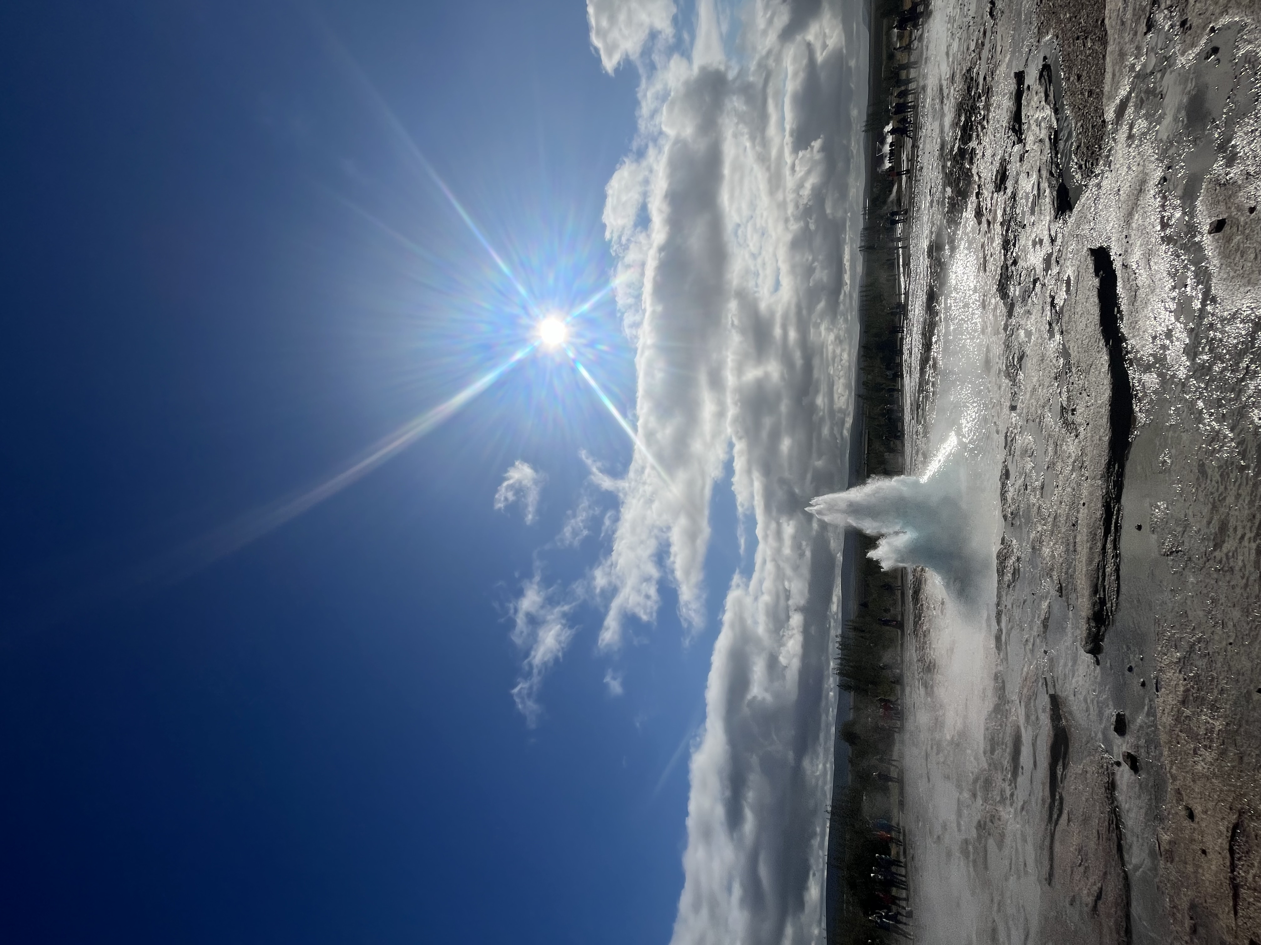 Au prochain arrêt, une légère odeur d'œufs pourris se fait sentir - nous avons atteint la zone géothermique Geysir. Partout, ça bouillonne et ça fume. En suivant une rivière chaude, nous nous retrouvons bientôt devant Strokkur, le geyser le plus actif. Toutes les dix minutes environ, il peut jaillir jusqu'à 35 mètres. Nous observons avec impatience - pourrons-nous deviner le moment où la prochaine éruption commencera et être assez rapides pour l'immortaliser ?