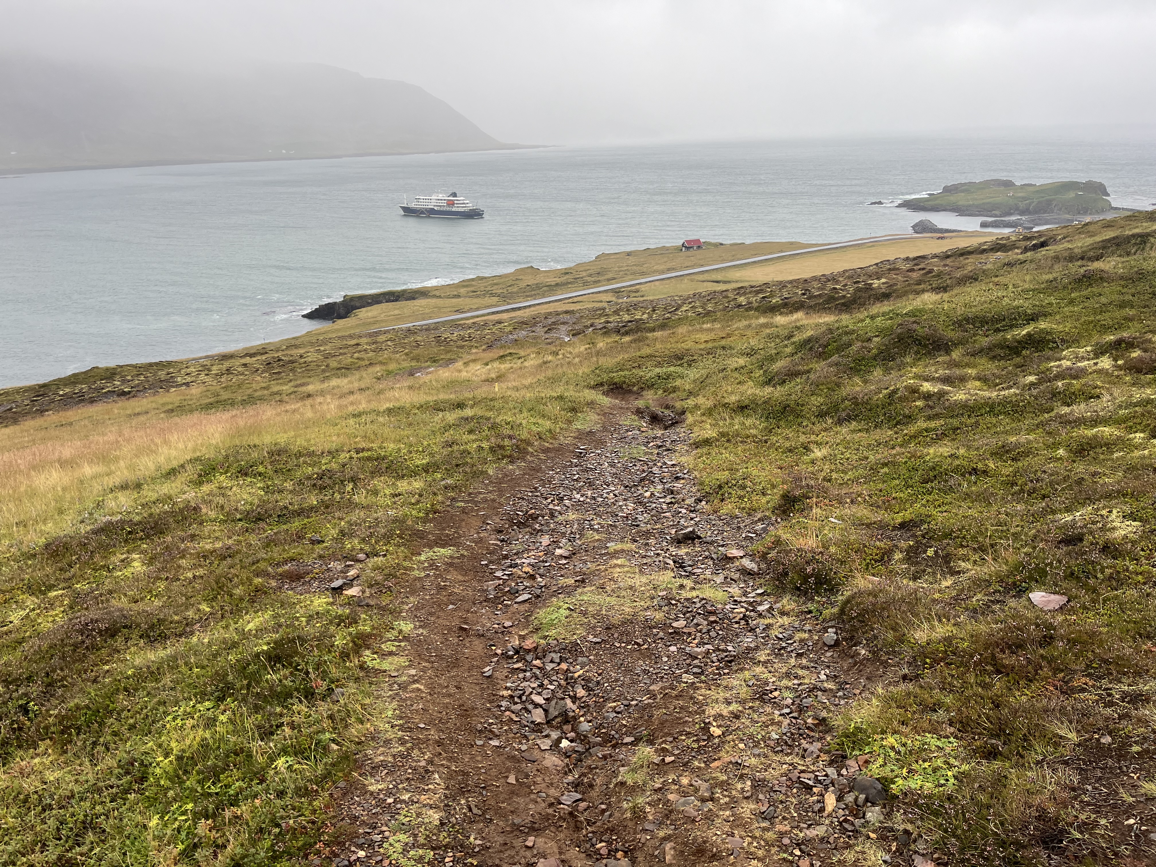 La traversée du « Hondius » jusqu'à la côte est une expérience un peu humide, mais surtout excitante. Les bateaux rapides filent à toute allure sur les vagues. Un bijou d'architecture contemporaine les attend. Ce logement du maître de port prouve que l'Islande est moderne et sophistiquée, même dans les coins les plus reculés. La longue randonnée mène à un volcan éteint, en passant par des bruyères et des buissons de myrtilles.