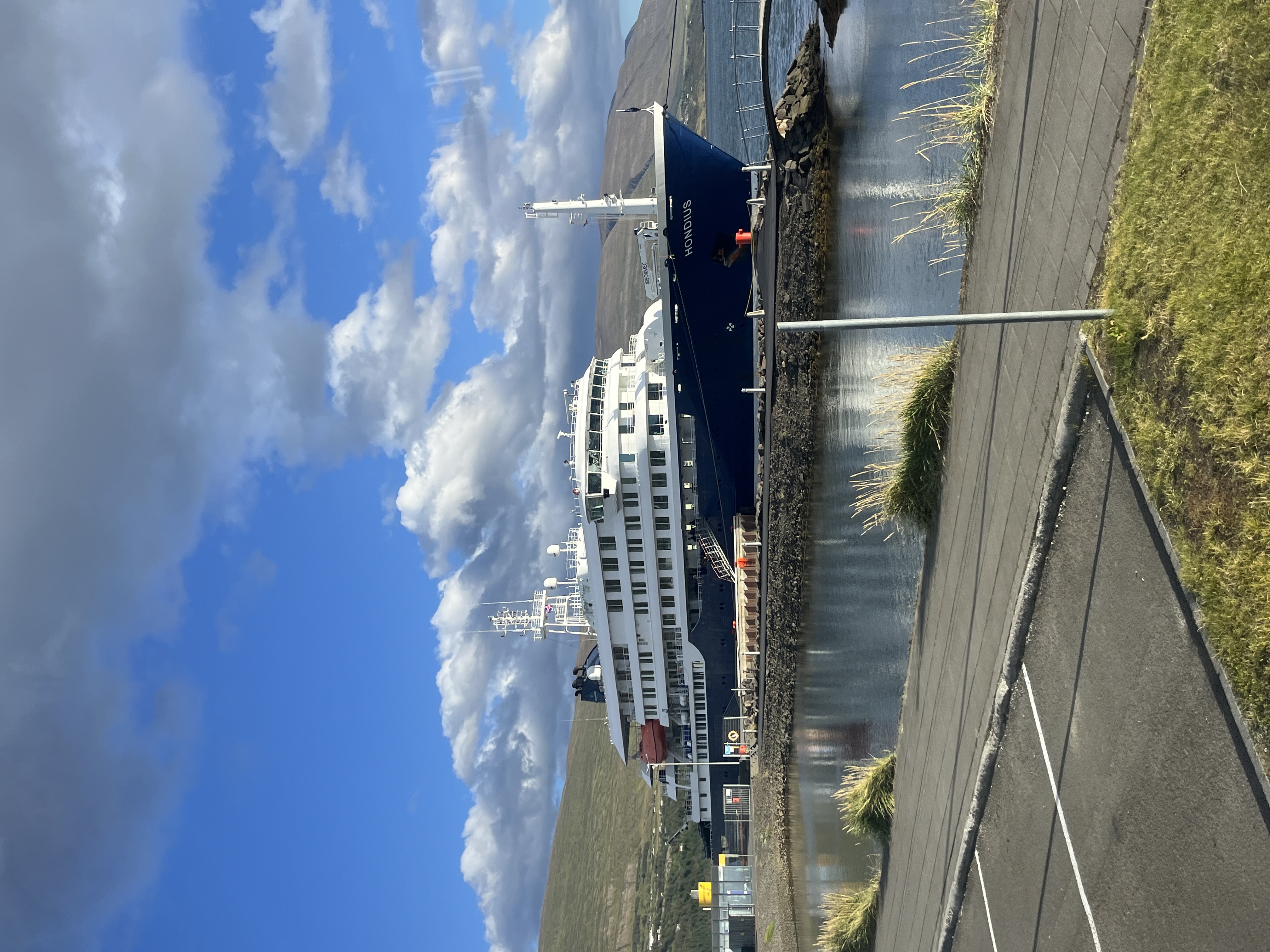 Au cours de la journée, les rochers stoïques des îles Féroé font leur apparition. Dans le dernier entretien de la journée, Sabrina nous parle de la vie quotidienne sur les îles aux moutons, le vrai nom de l'archipel. En effet, le nombre de moutons et d'hommes s'équilibre à 55'000 chacun. Les îles Féroé sont un territoire autonome du royaume du Danemark. En début de soirée, le « Hondius » entre dans le port de Tòrshavn.