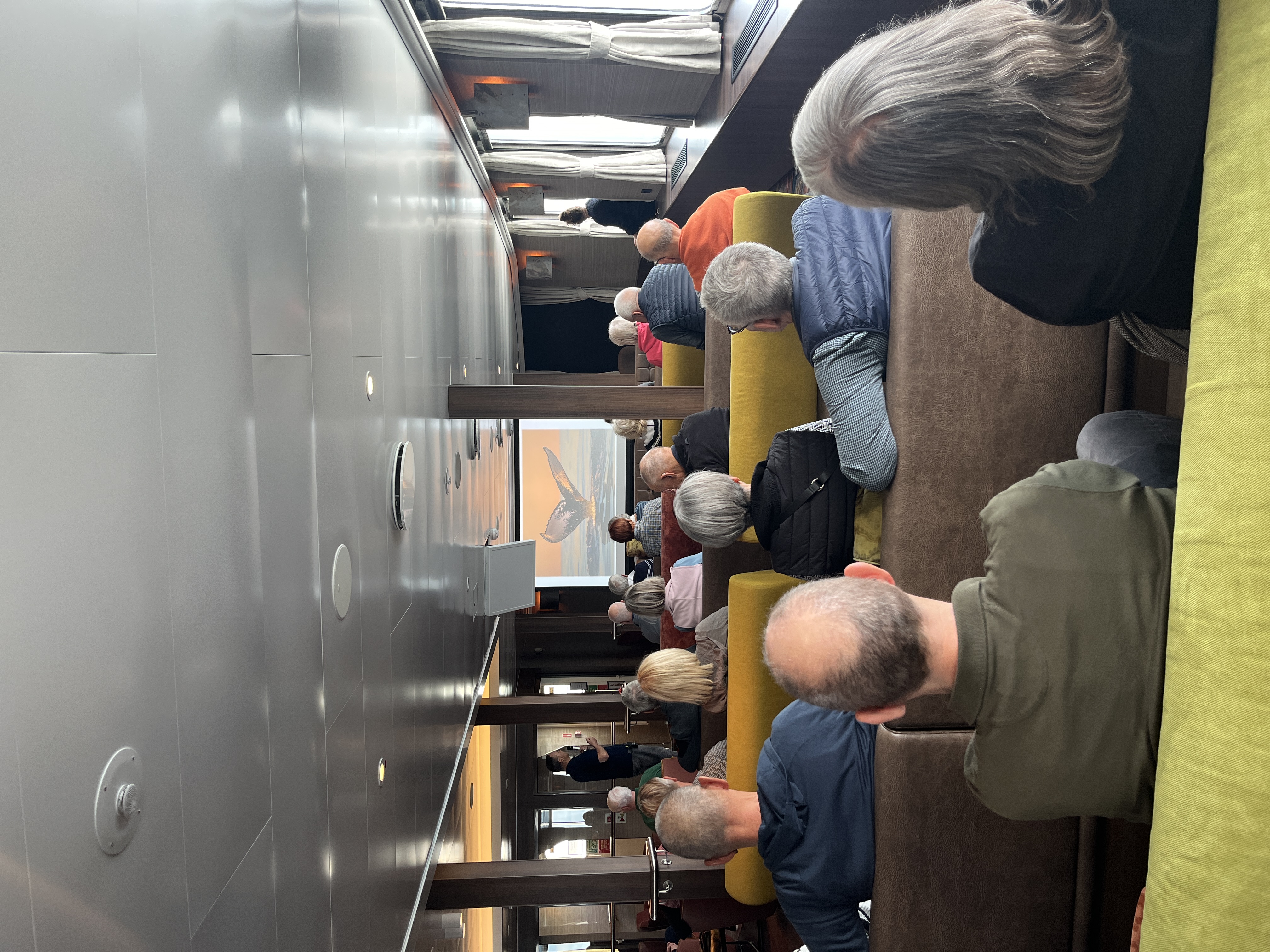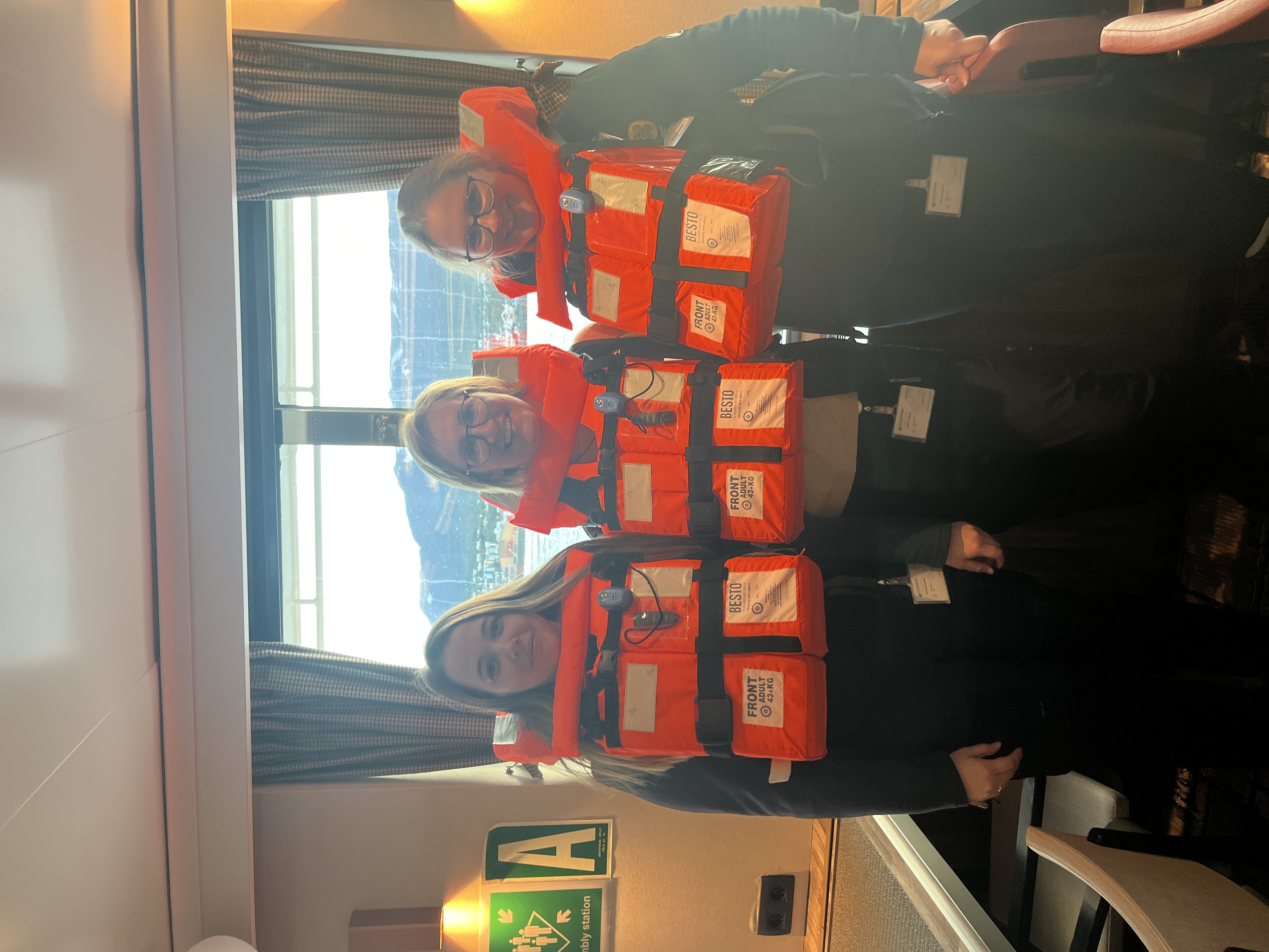 Il est impressionnant de voir combien de personnes dormaient et travaillaient dans un espace aussi restreint. Nous arrivons enfin à notre bateau ! Après avoir pris possession de nos cabines, nous faisons un exercice d'urgence avec l'équipe d'expédition. Puis c'est le moment de larguer les amarres ! Nous partons sous un ciel radieux et nous dirigeons vers Húsavík. Le voyage en mer commence !