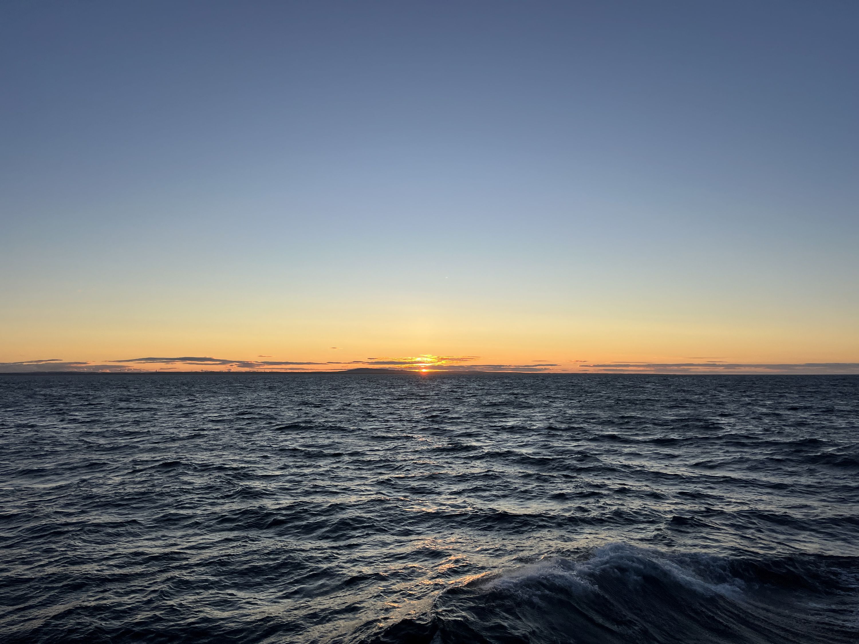 Les voyageurs sont réveillés par le soleil de l'Atlantique Nord en direction des îles Féroé. Après un copieux petit-déjeuner, des conférences sont au programme.