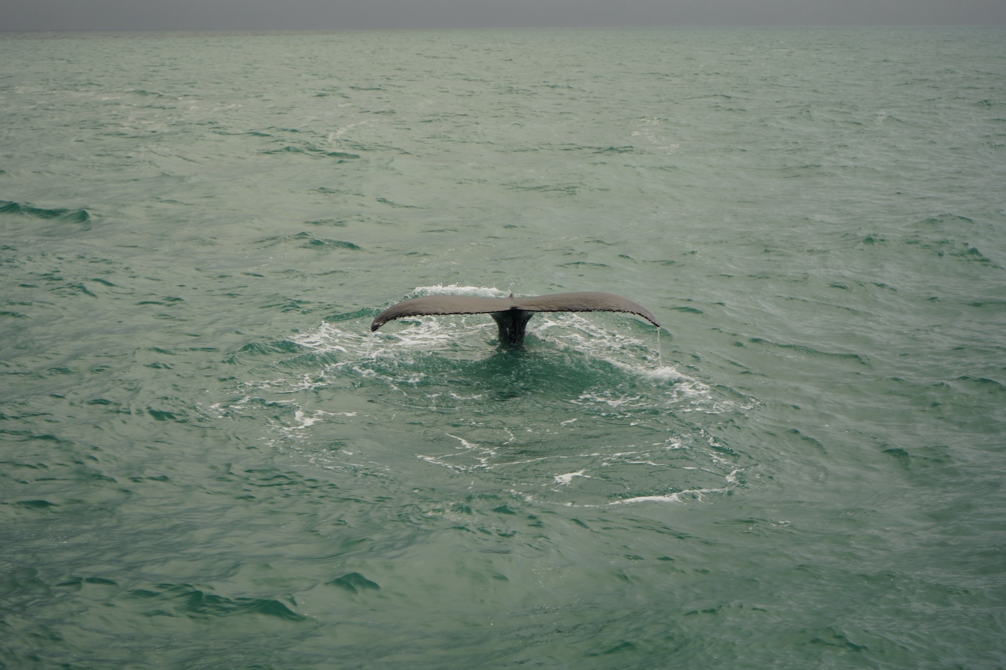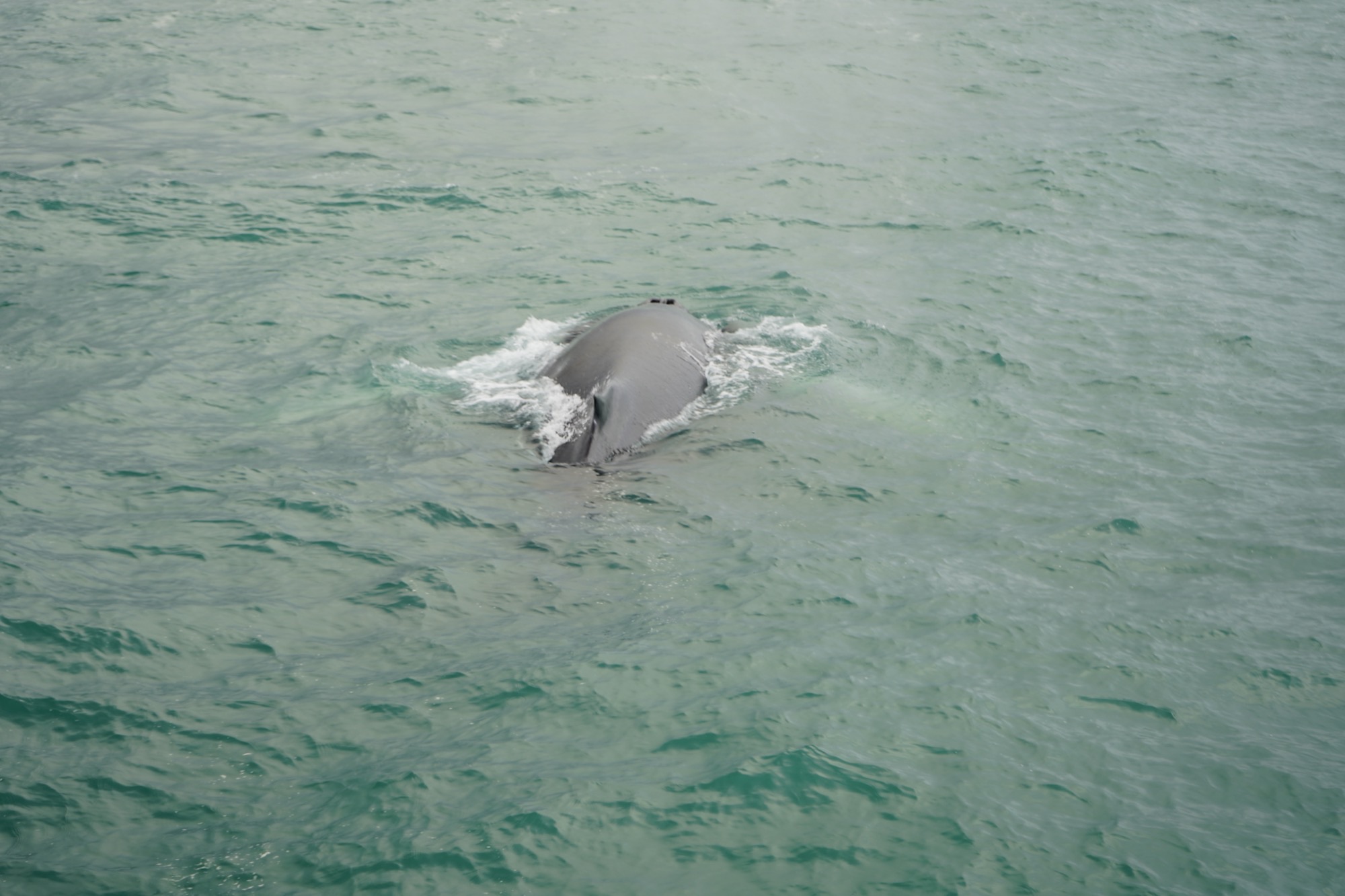 Un autre groupe se rend sur des bateaux pour observer patiemment les baleines à bosse ; deux spécimens ont effectivement la gentillesse de se laisser observer.