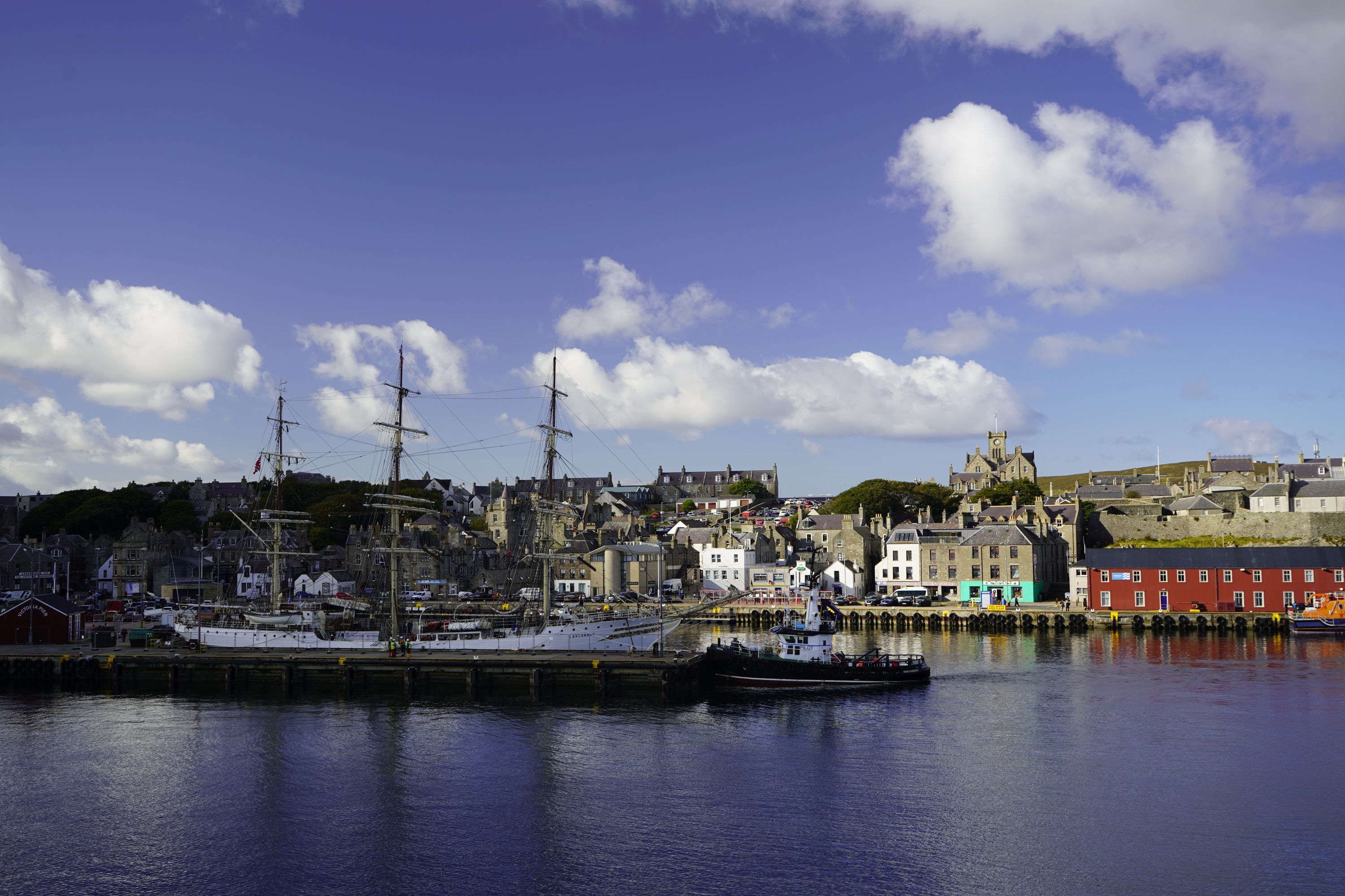 Amarrage dans le port des Orcades et découverte de la ville principale de Kirkwall et de sa cathédrale St Magnus. L'architecture de ce lieu de culte témoigne de l'attachement des Orcades à la Scandinavie, mais surtout, les autels et les tableaux racontent le destin commun des habitants de l'île avec la navigation.