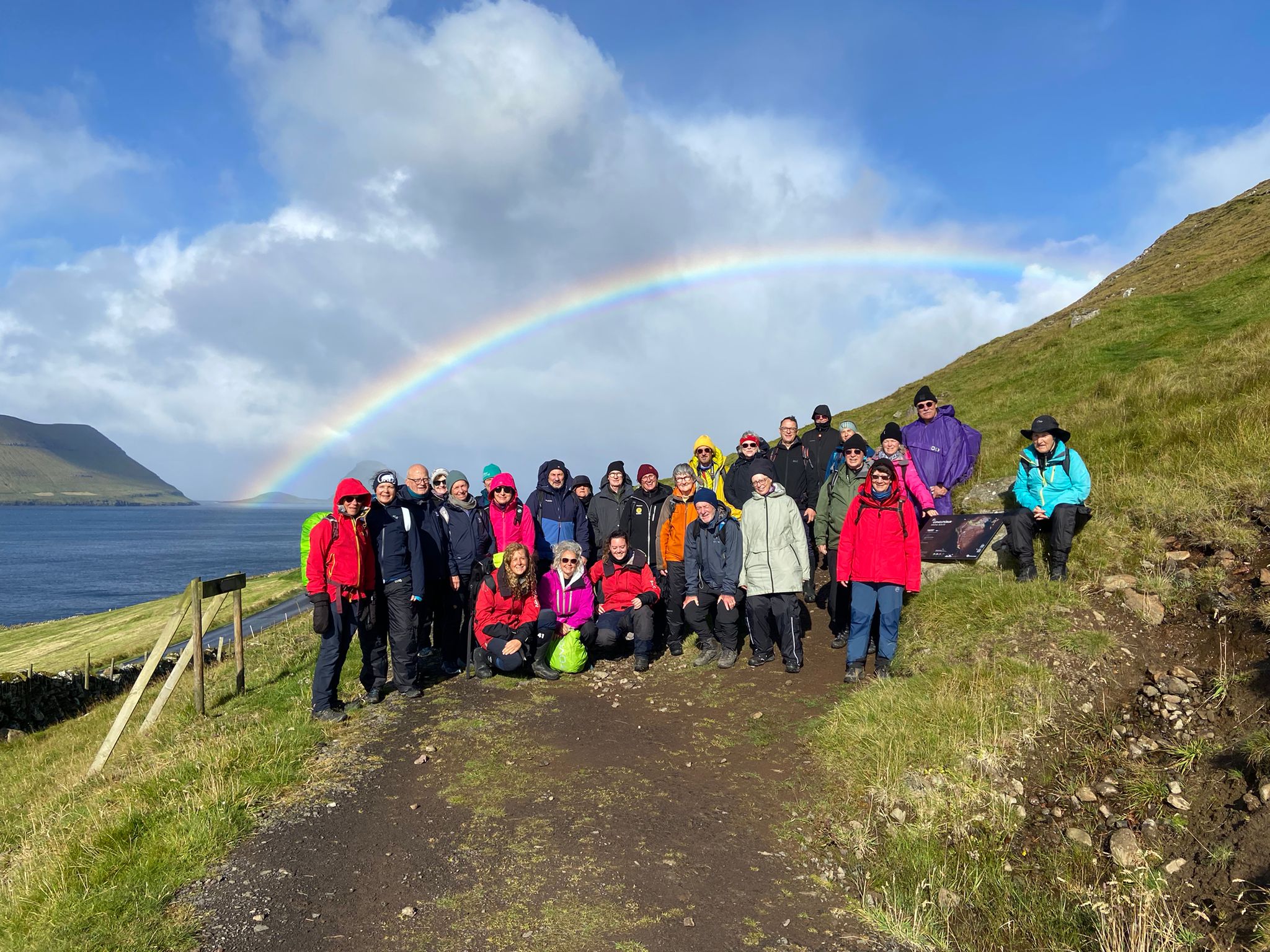 Pendant ce temps, les plus ambitieux gravissent les collines près de Torshavn jusqu’aux ruines d’une église du XVIe siècle au nom retentissant de Kirkjubomurin, où un évêque catholique avait autrefois le pouvoir. Un autre attrait sont les nombreux arc-en-ciel qui apparaissent en permanence ici en plein soleil. Ils accompagnent notre groupe tout au long du chemin.