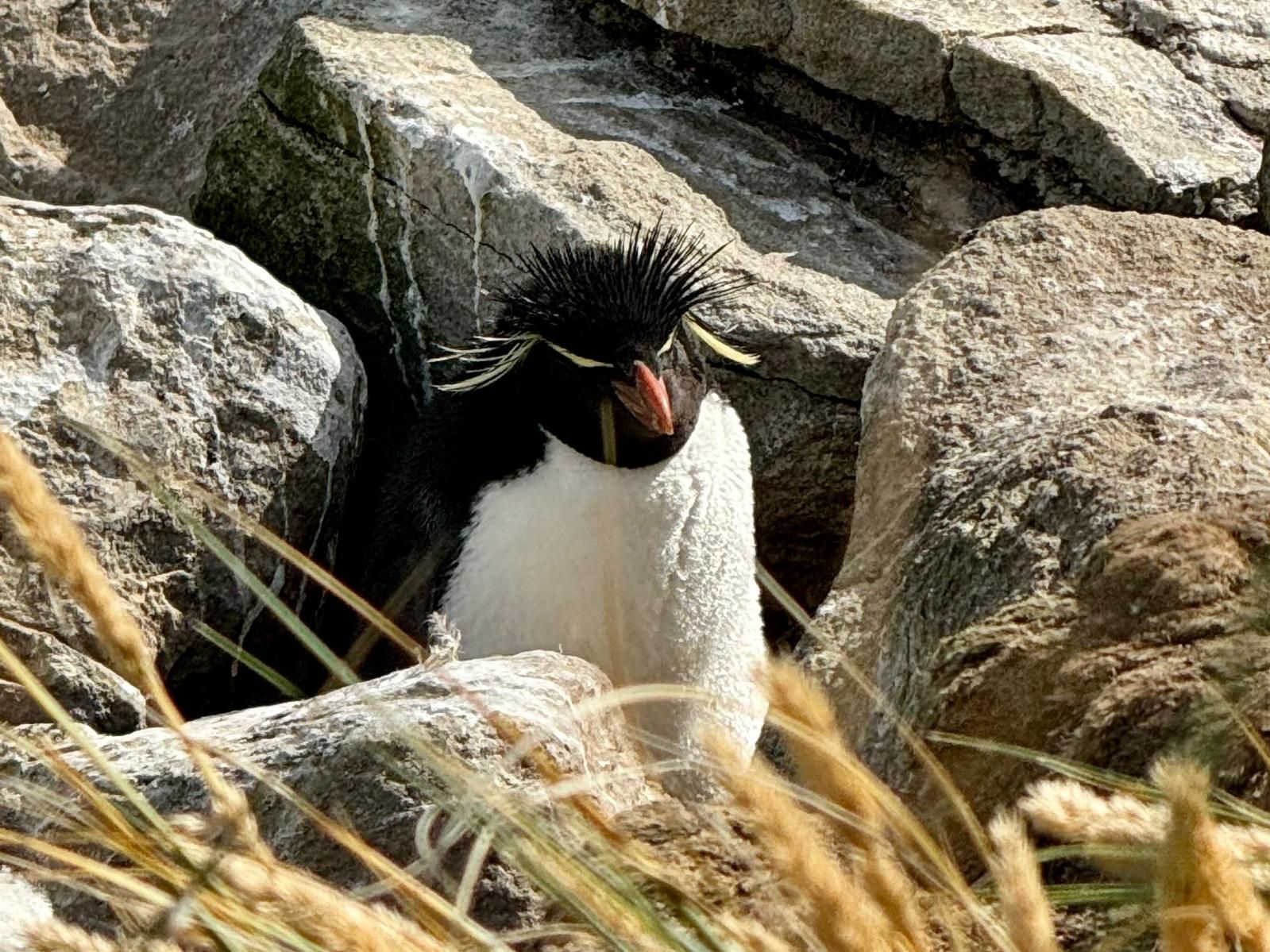 Nous nous réveillons ce matin avec un grand soleil et arrivons aux îles Malouines. C’est l’heure de notre toute première sortie en zodiac, à Steeple Jason, qui héberge la plus grande colonie d’albatros à sourcils noirs au monde avec pas moins de 210'000 couples. L’excursion prévue s’avérera une vraie aventure avec une forte houle qui malmène les zodiacs et leurs passagers. Malgré tout, tout le monde revient à bord avec un grand sourire avec l’observation de nombreux animaux dont des gorfous dorés, des phoques et de nombreux oiseaux de mer.