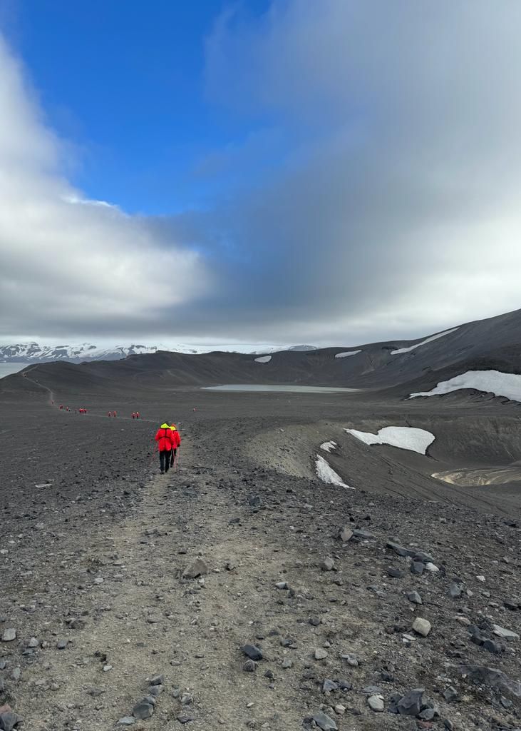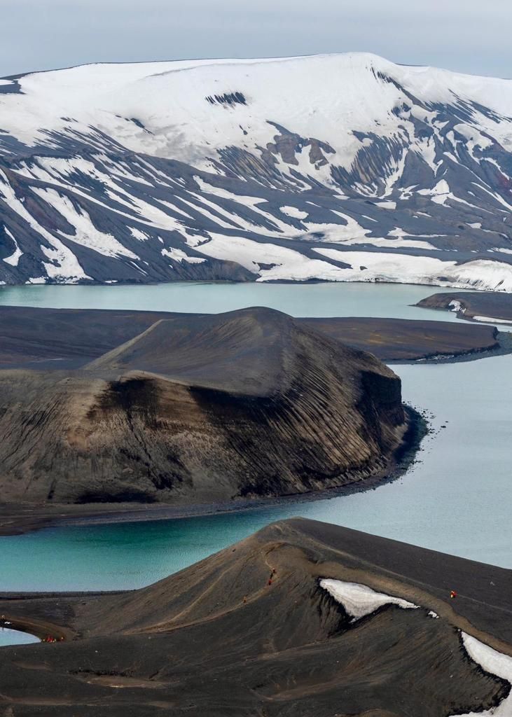 En fin de matinée, le navire repart et se dirige vers l’île de Deception. Cette île est absolument exceptionnelle car il s’agit d’un volcan actif. Un passage étroit et très impressionnant nommé « Soufflet de Neptune » permet au navire d’entrer dans la caldeira. Nous effectuons une sortie à terre dans un paysage lunaire façonné par les différentes éruptions volcaniques qu’a connu l’île au fil du temps. Nous partons en randonnée le long des arêtes d’un cratère dans un décor de toute beauté. La marche se termine par un moment fort du voyage : le Polar Plunge ou bain polaire dans une eau à 1°C. Plusieurs passagers se lancent avec courage dans les eaux glacées de l’Antarctique.