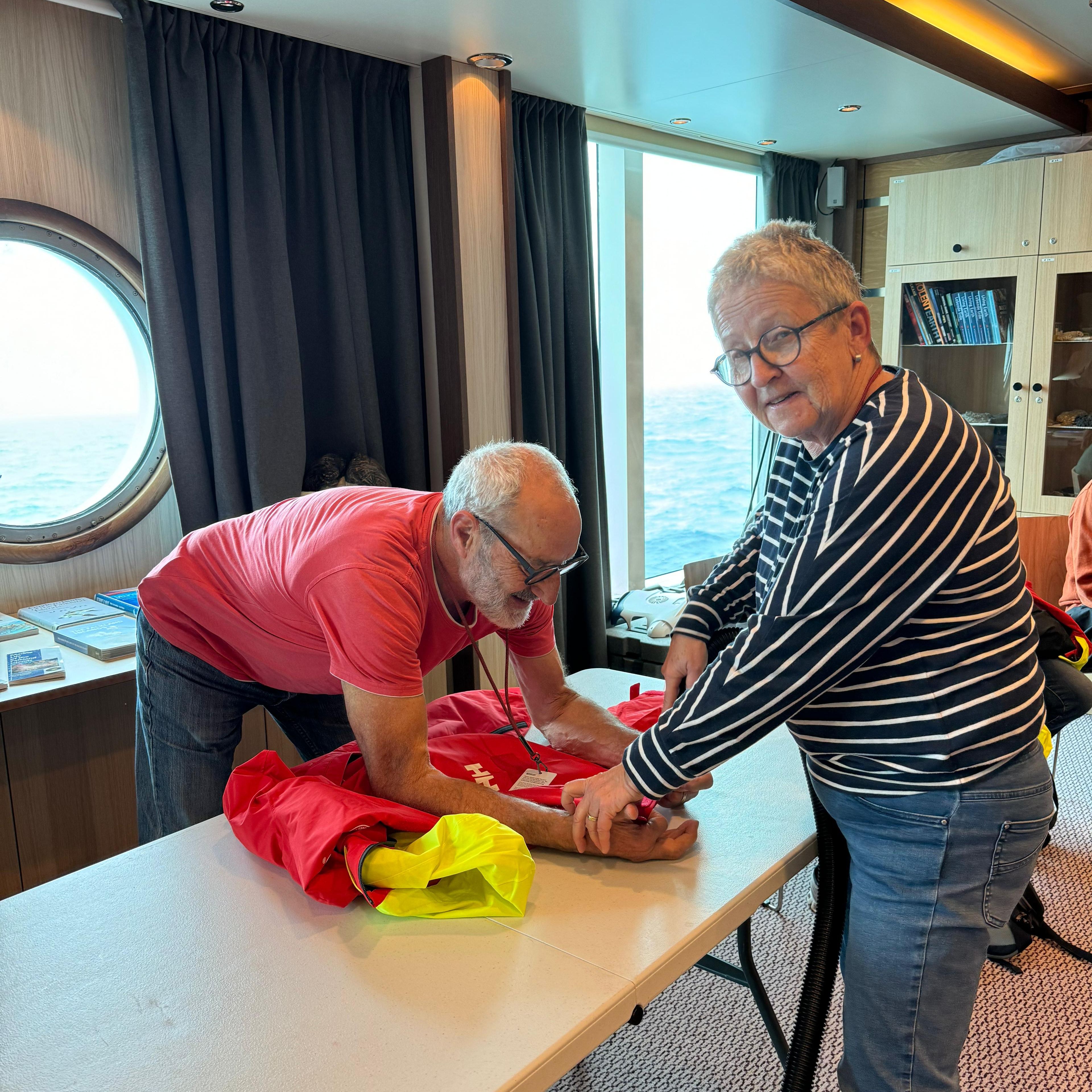 Une activité des plus insolites nous a été préparée pour cette journée en mer : du nettoyage. Notre journée a commencé tout d’abord par une présentation de l’association IAATO et des directives que cette organisation impose à tous les visiteurs de la Géorgie du Sud et de l’Antarctique. Nous avons compris à quel point l’environnement dans lequel nous allons évoluer ces prochains jours est vulnérable, notamment à toutes les espèces, bactéries et virus pouvant être involontairement amenés par l’homme lors de sorties à terre. Afin de préserver au mieux cette nature fragile, nous avons tous été de corvée d’aspirateur et de brosse pour nettoyer à fond tout notre équipement pour les prochaines sorties. La navigation se poursuit vers la Géorgie du Sud, c’est l’occasion aussi de participer à quelques présentations ou ateliers de science participative.