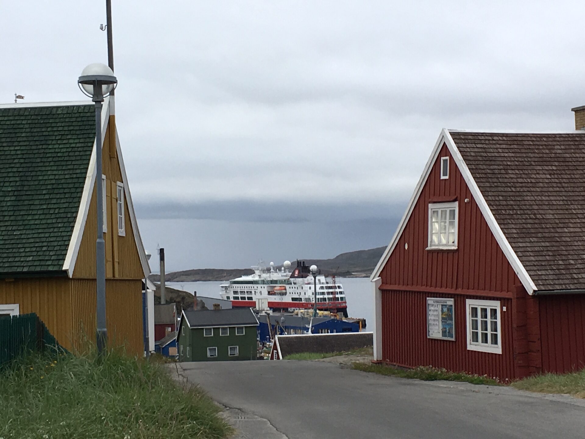Une journée bien remplie : Le buffet du petit déjeuner commence à sept heures du matin, suivi d’un exercice de sécurité pour tous les passagers, d’une présentation des combinaisons de secours et des présentations du programme prévu. Après le déjeuner, nous débarquons pour la première fois depuis notre départ. Depuis la balustrade, nous observons les maisons colorées de Sisimiut, en s’approchant lentement. Lors des excursions prévues, nous avons eu du choix. Beaucoup ont exploré l’endroit à pied, d’autres dans le bus ou en bateau. En retour sur le bateau la bonne nouvelle nous attend: les bagages ont été livres!