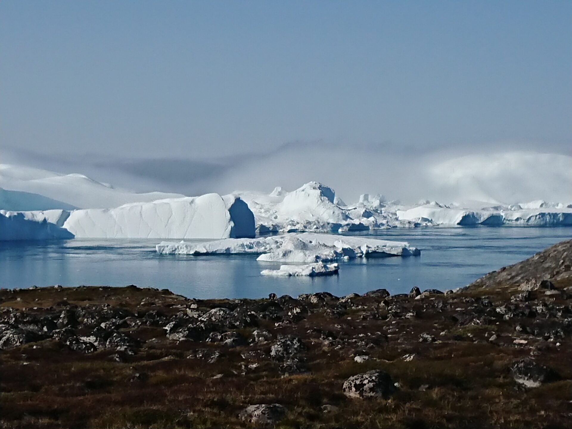 À l’horizon, nous voyons le brouillard se lever et après quelques minutes, nous sommes assis dans une épaisse soupe de brouillard. Pour la première fois, nous constatons à quelle vitesse le temps peut changer au Groenland.