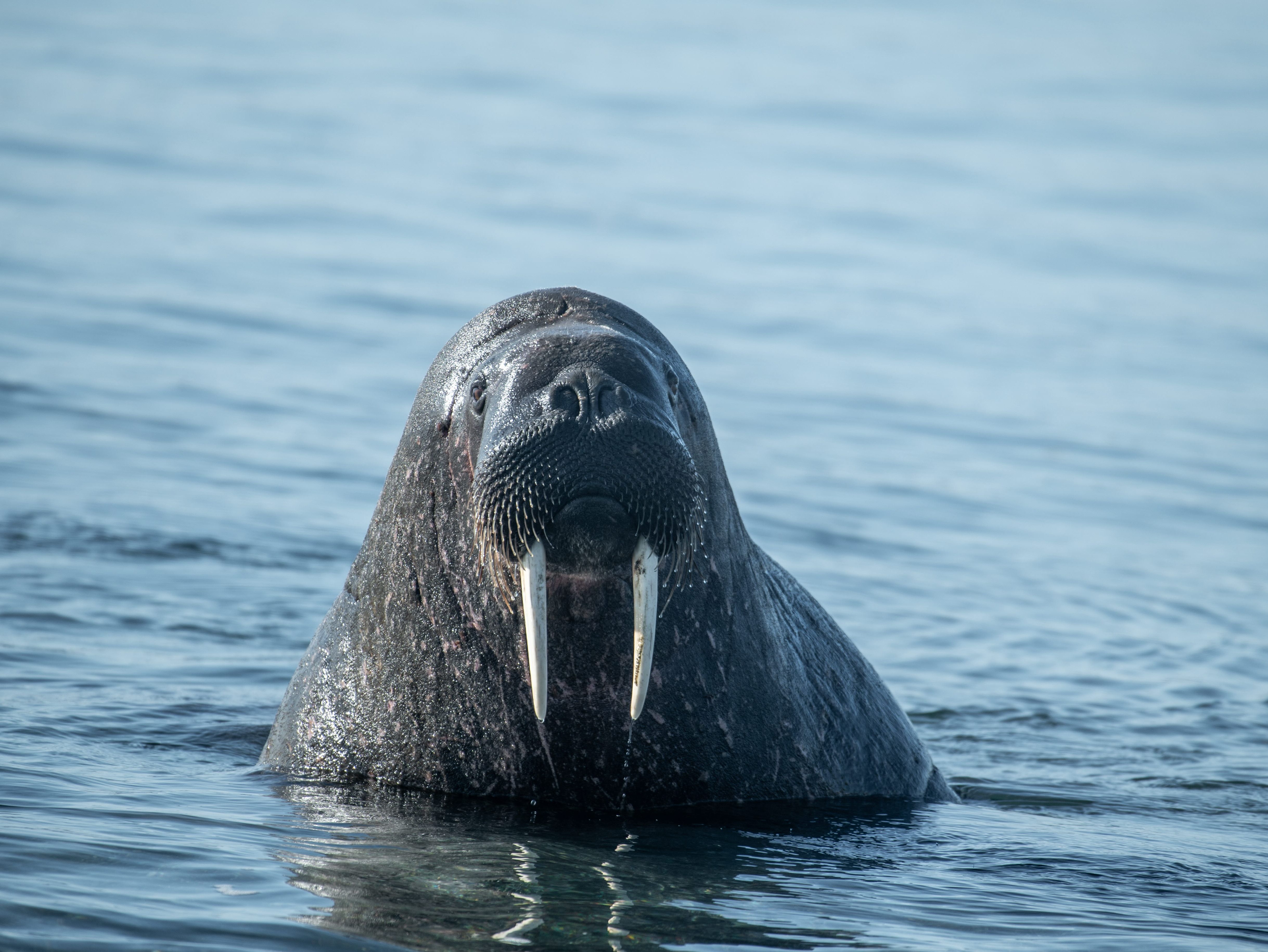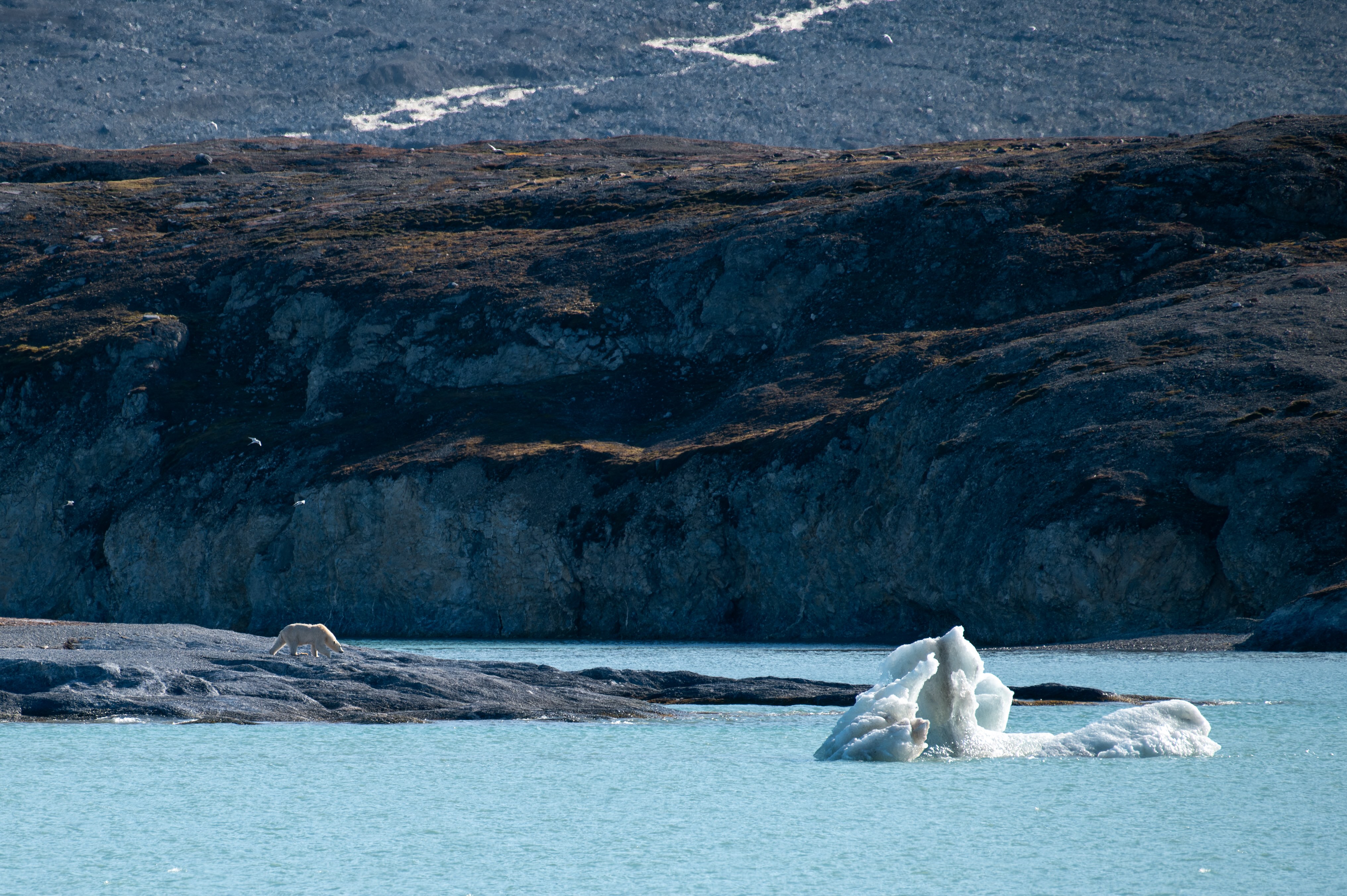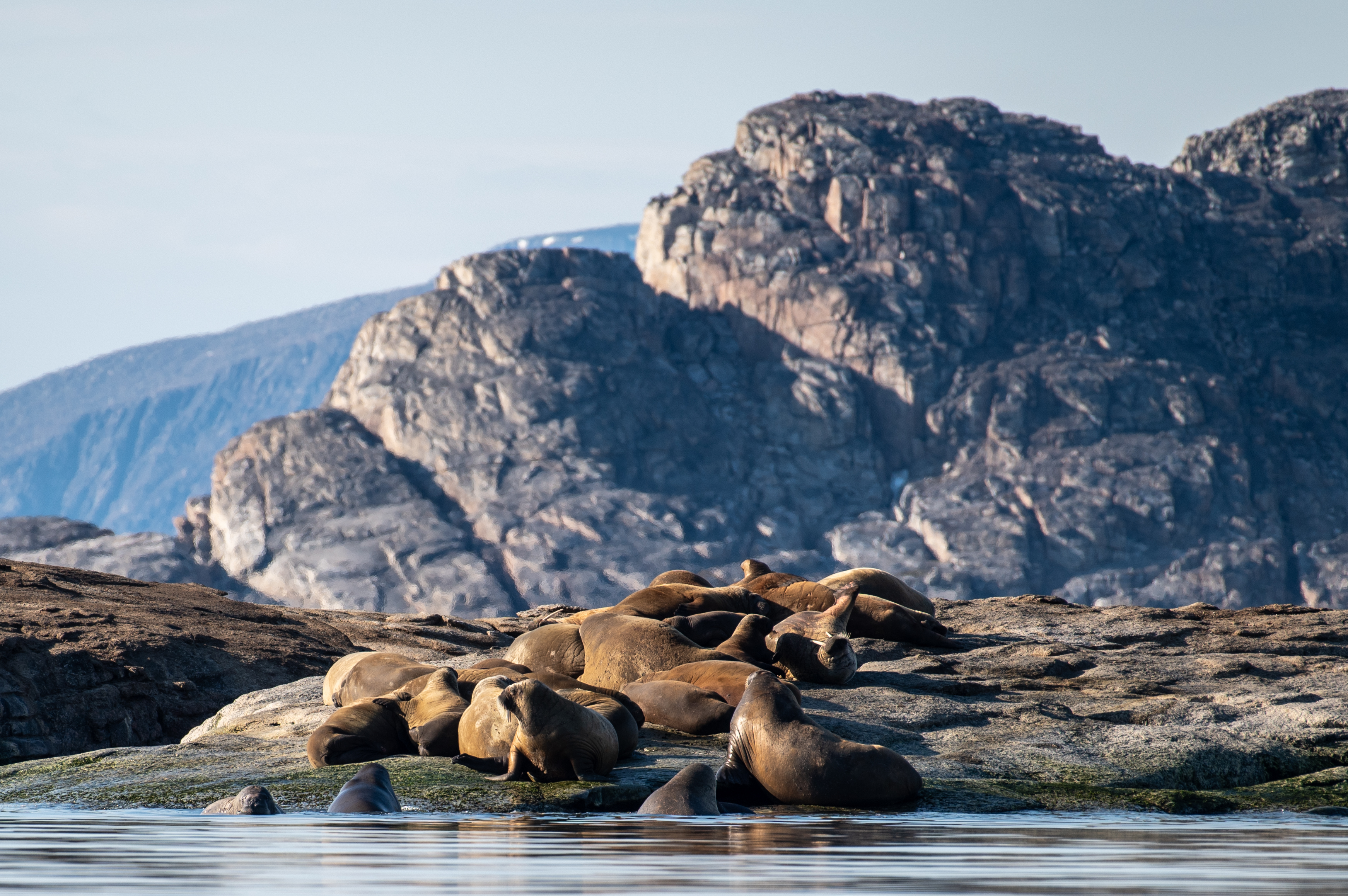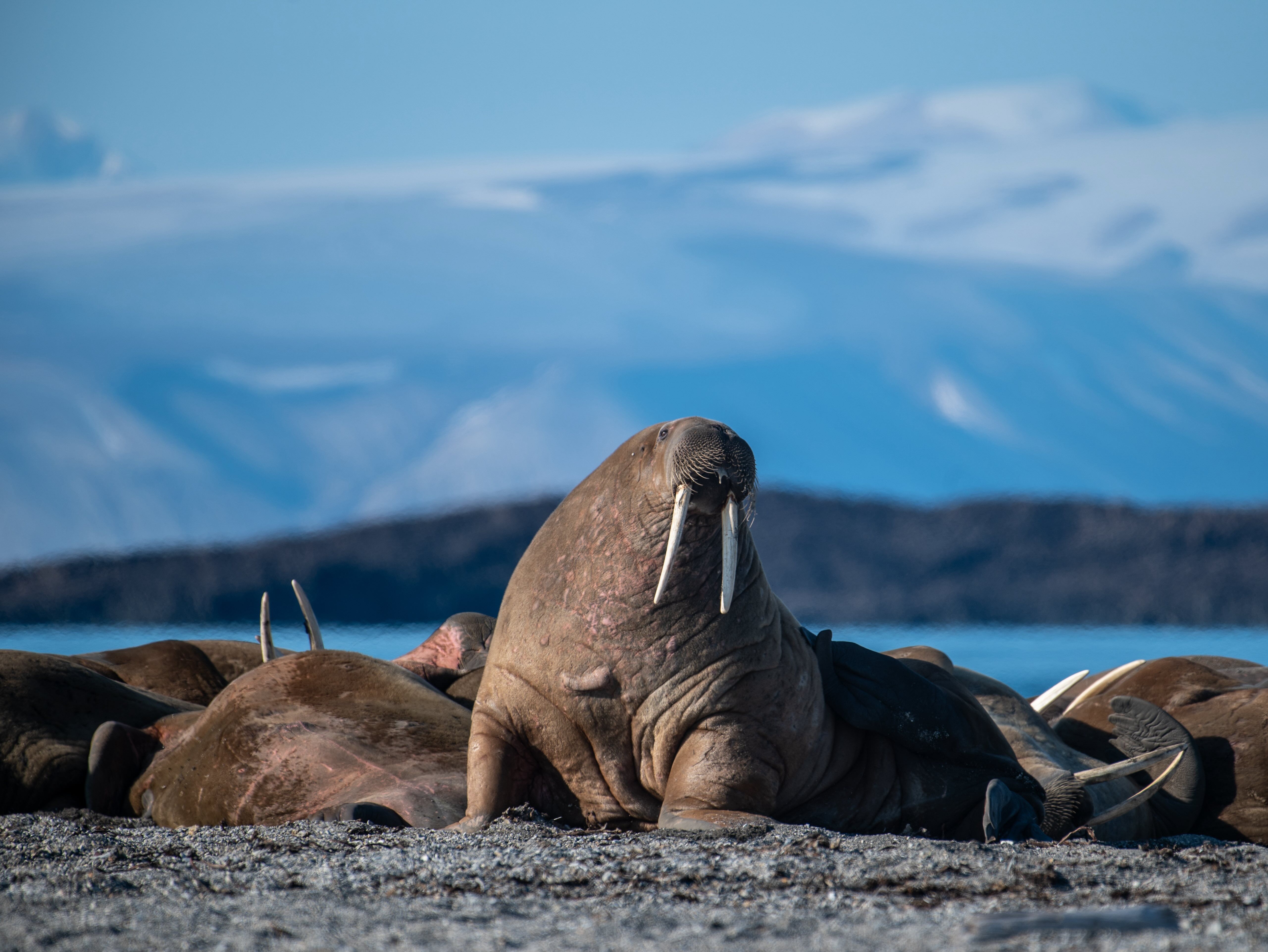 La journée débute avec une visite d’une colonie de morse sur la plage de Wahlbergøya. Quand on voit ces animaux, c’est toujours une expérience pour tous les sens. On constate l’effort que cela demande aux morses de se déplacer sur cette plage, on entend l’énervement et les disputes entre phoques et on sent également leur présence, surtout quand on se trouve sur le côté et qu'il y a un peu de vent. Il faut reconnaître qu’ils sont tout de suite plus élégant une fois qu’ils se trouvent dans l’eau. Pendant ce temps, l’autre moitié du groupe découvre les environs à bord du zodiac et observent un le phoque isolé qui se trouve au milieu d’un iceberg.