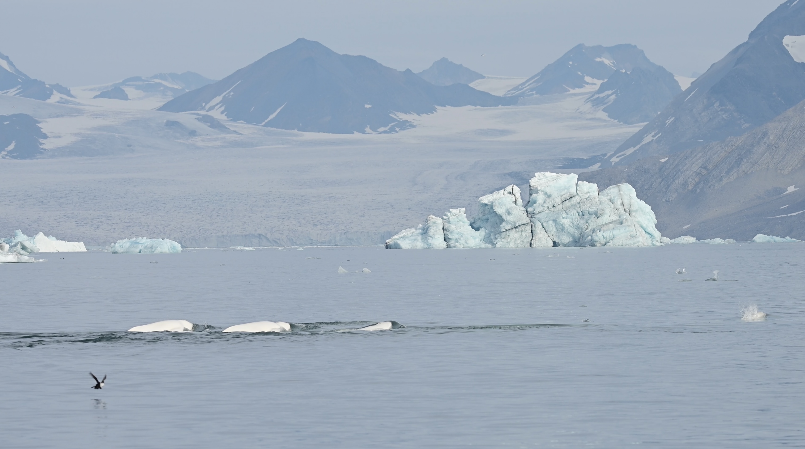 Après un dernier diner à bord de notre cher Hondius, il est temps d’embarquer pour une dernière sortie en zodiac devant le glacier Samarinbreen. Et comme si la nature voulait nous offrir une dernière journée inoubliable, nous percevons des baleines à bosses à quelques mètres de nos Zodiacs. Après leur performance d’une bonne demi-heure, nous nous approchons du glacier pour admirer une dernière fois ces masses de glaces géantes de près. Et comme si cela ne suffisait pas, des belugas accompagnent notre sortie du Fjord à quelques centaines de mètre du bateau.