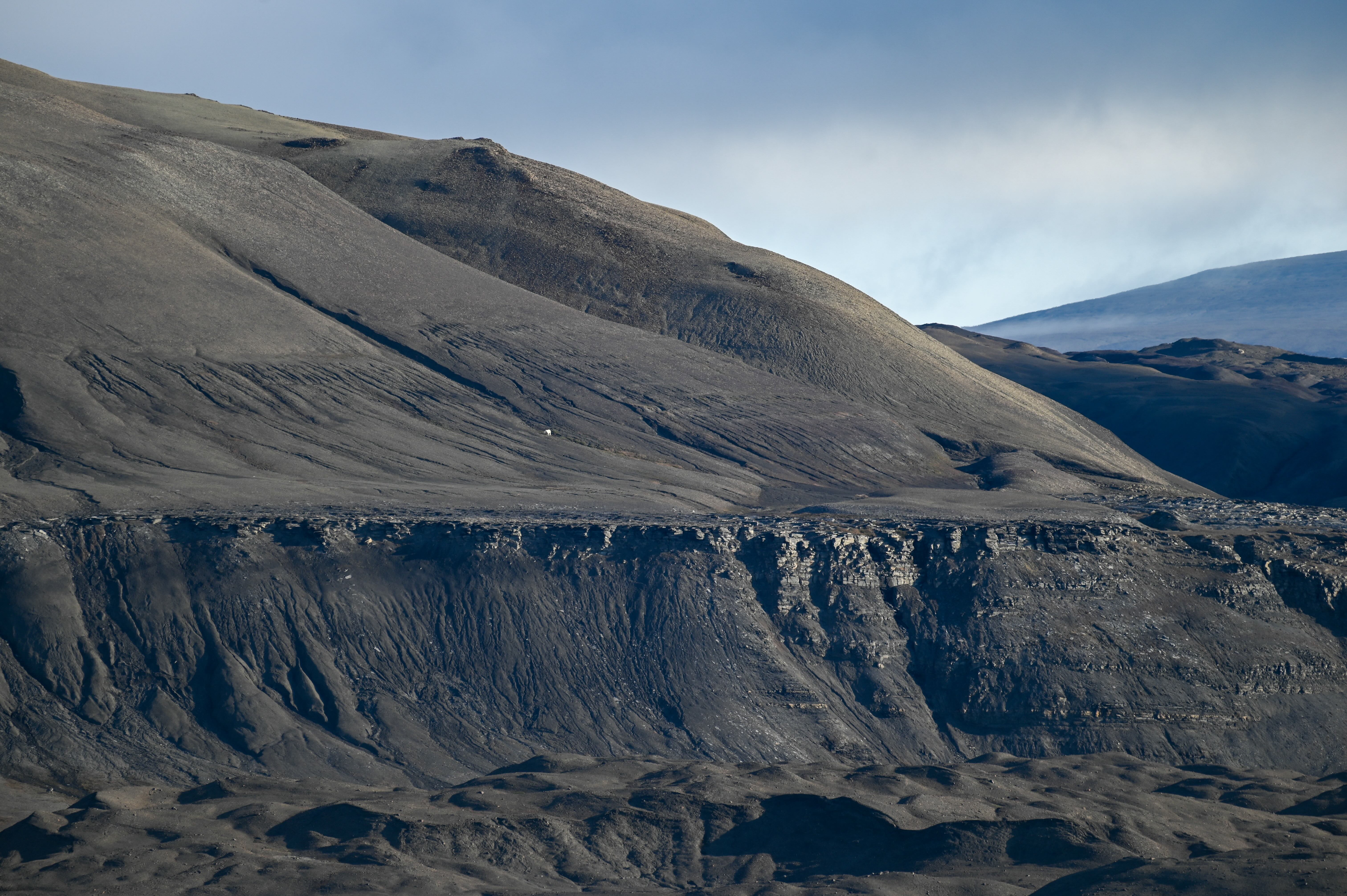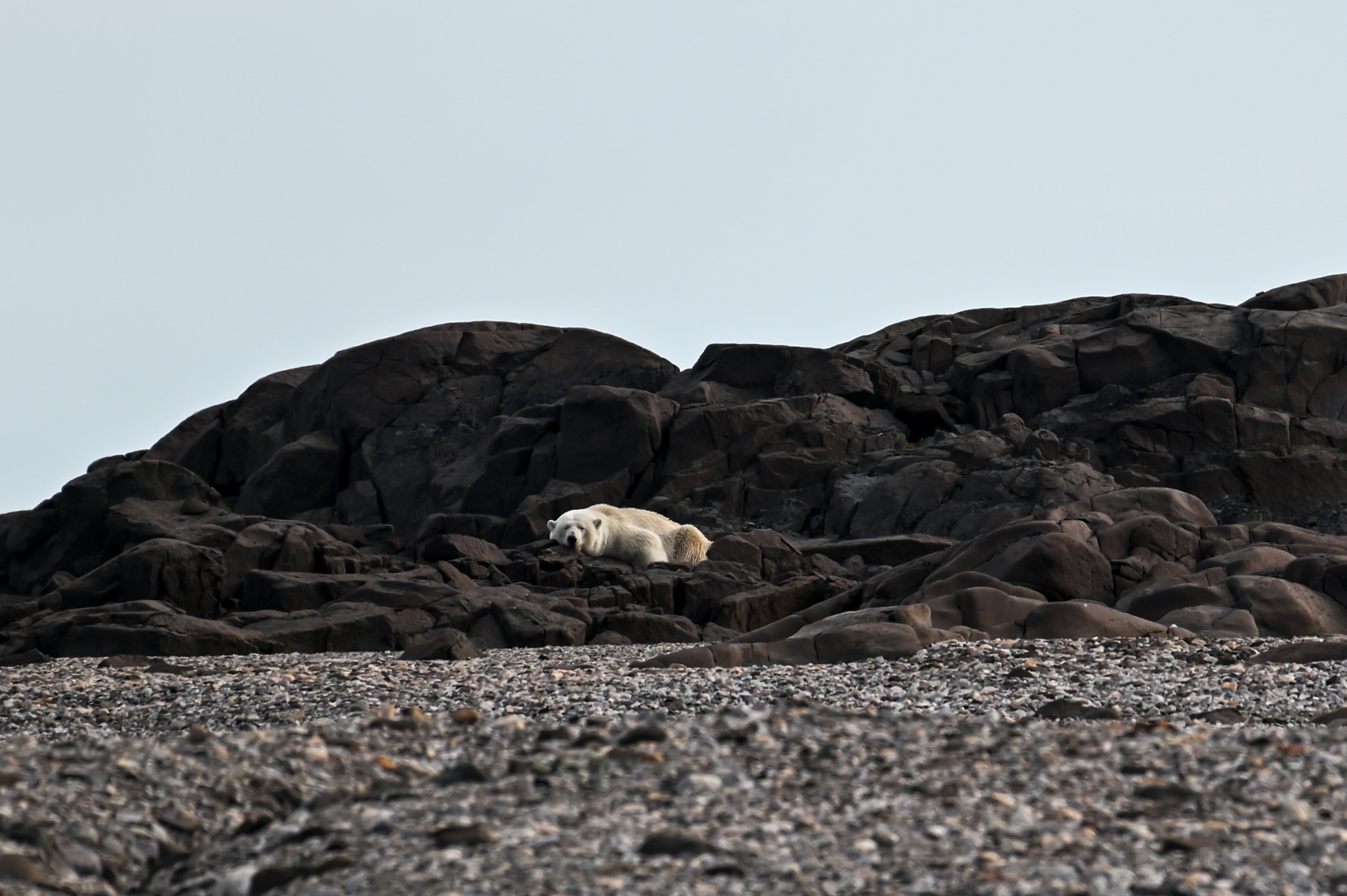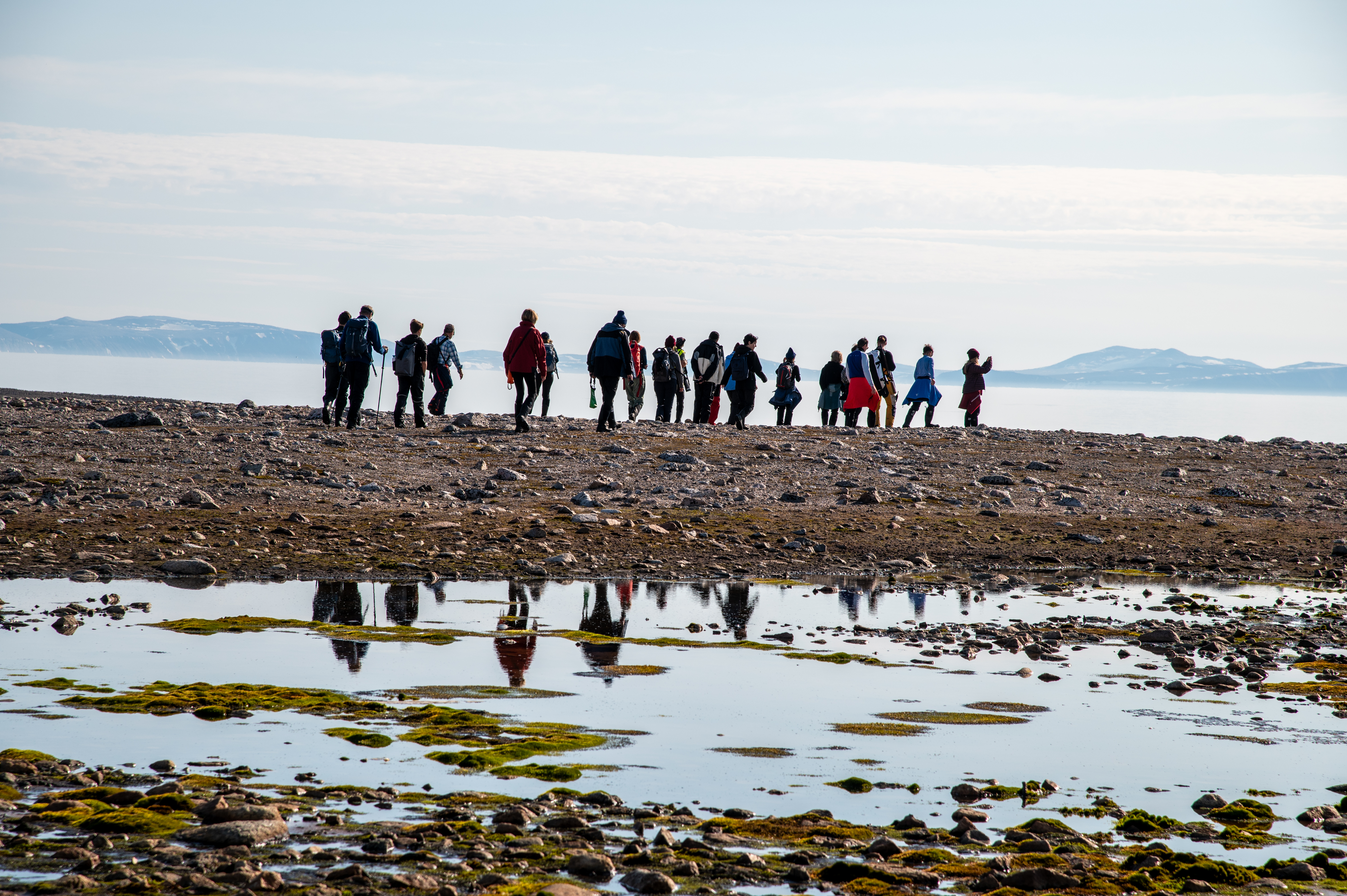 Dans le courant de l'après-midi, nous avons la possibilité de faire une autre randonnée à Chermisdeøya, une autre île des Seven Islands. Alors que certains décident d’explorer la plage et les animaux qu’ils trouvent dans l’eau, d’autres partent à nouveau pour une randonnée plus longue pour découvrir les environs. Sur la plage, nous découvrons malheureusement un ours polaire mort, ce qui est certes très triste mais au moins cela nous permet de nous faire une idée de la taille de cet animal et d'observer de près sa mâchoire redoutable.