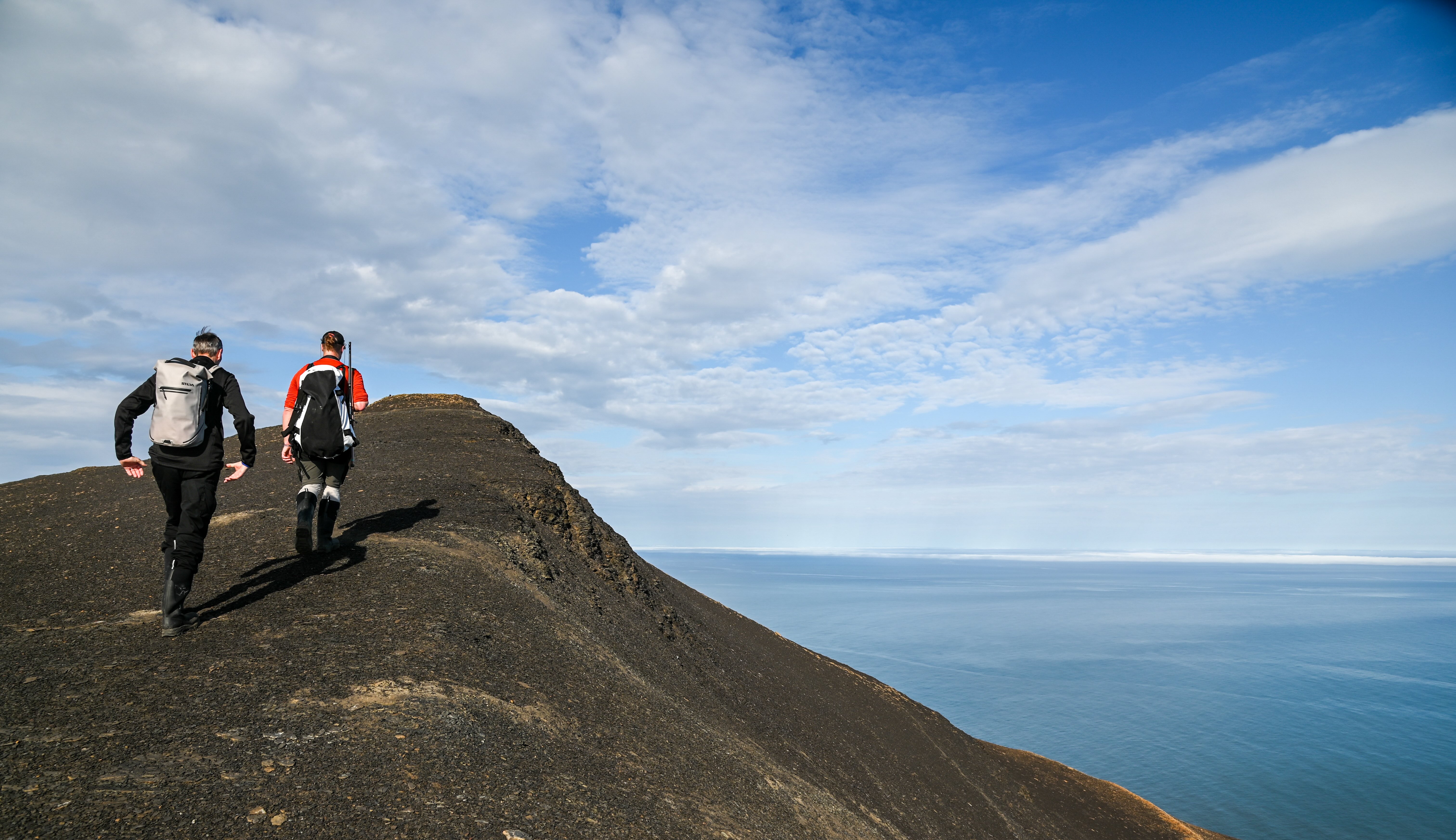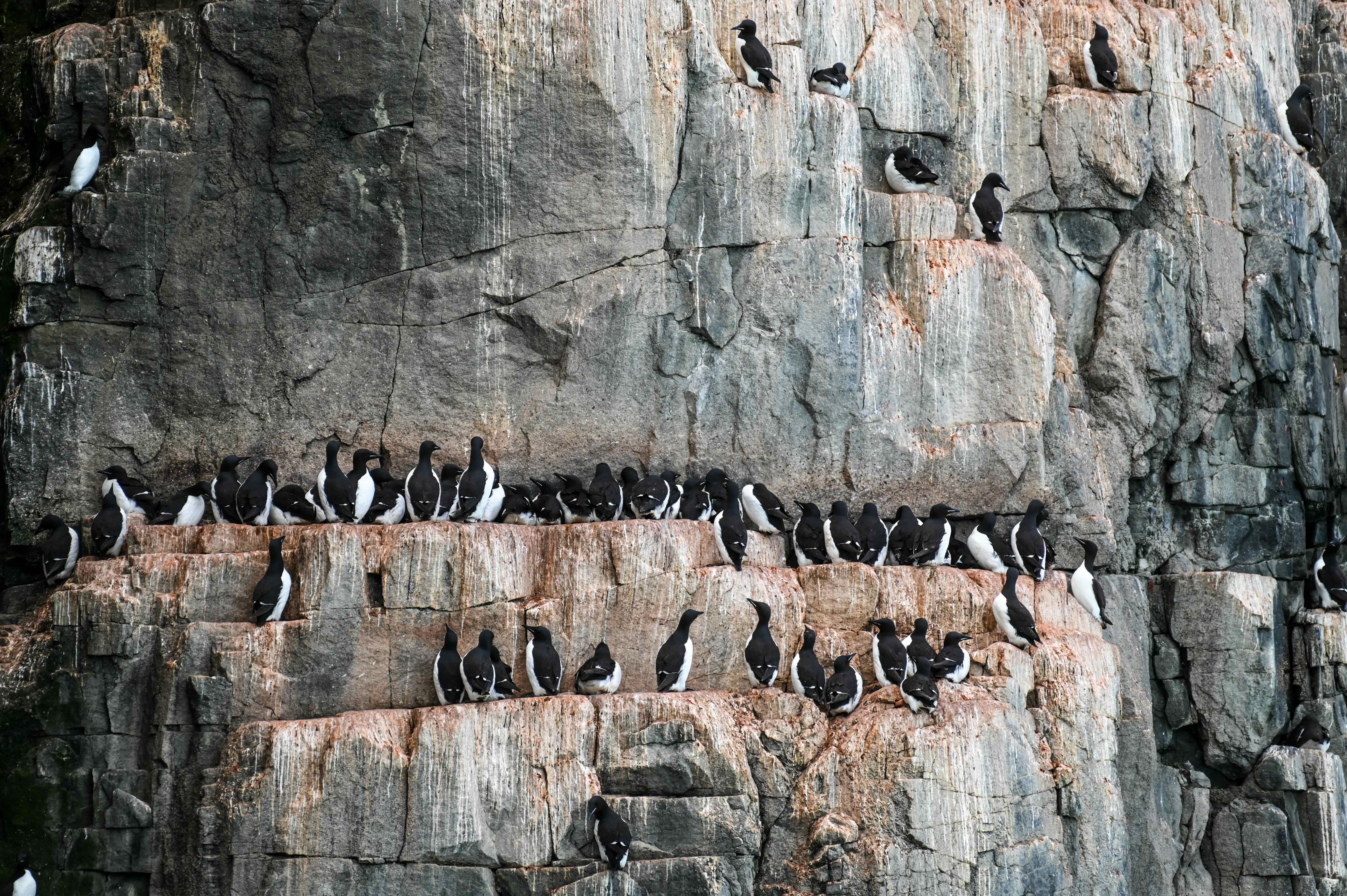 L’après-midi est consacré à Alkfjellet, traduit littéralement par « montagne des guillemots », où nous pouvons voir, entendre et sentir jusqu’à 60'000 couples de guillemots de Brünnich sur la falaise, dans l’air et dans l’eau: quel spectacle impressionnant !