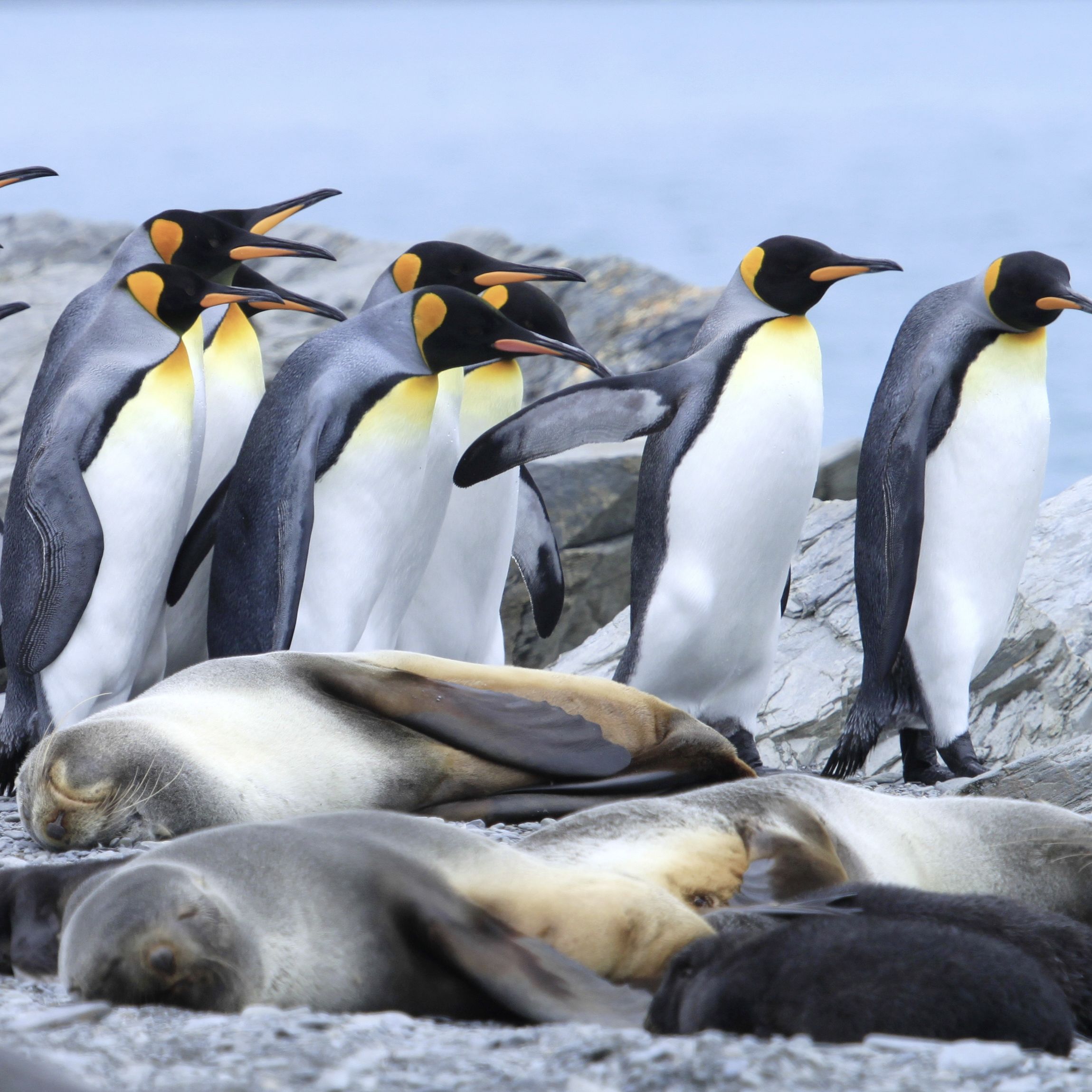 Contrairement à l'Arctique, qui est une mer gelée en permanence, l'Antarctique est un véritable continent. C'est ici - et sur les îles situées au large - que vivent d'immenses colonies de manchots. D'immenses icebergs tabulaires et des paysages d'une violence inouïe offrent un panorama époustouflant. Le manchot royal et le gorfou doré vivent sur les îles subantarctiques. La Géorgie du Sud est LE paradis des animaux par excellence.