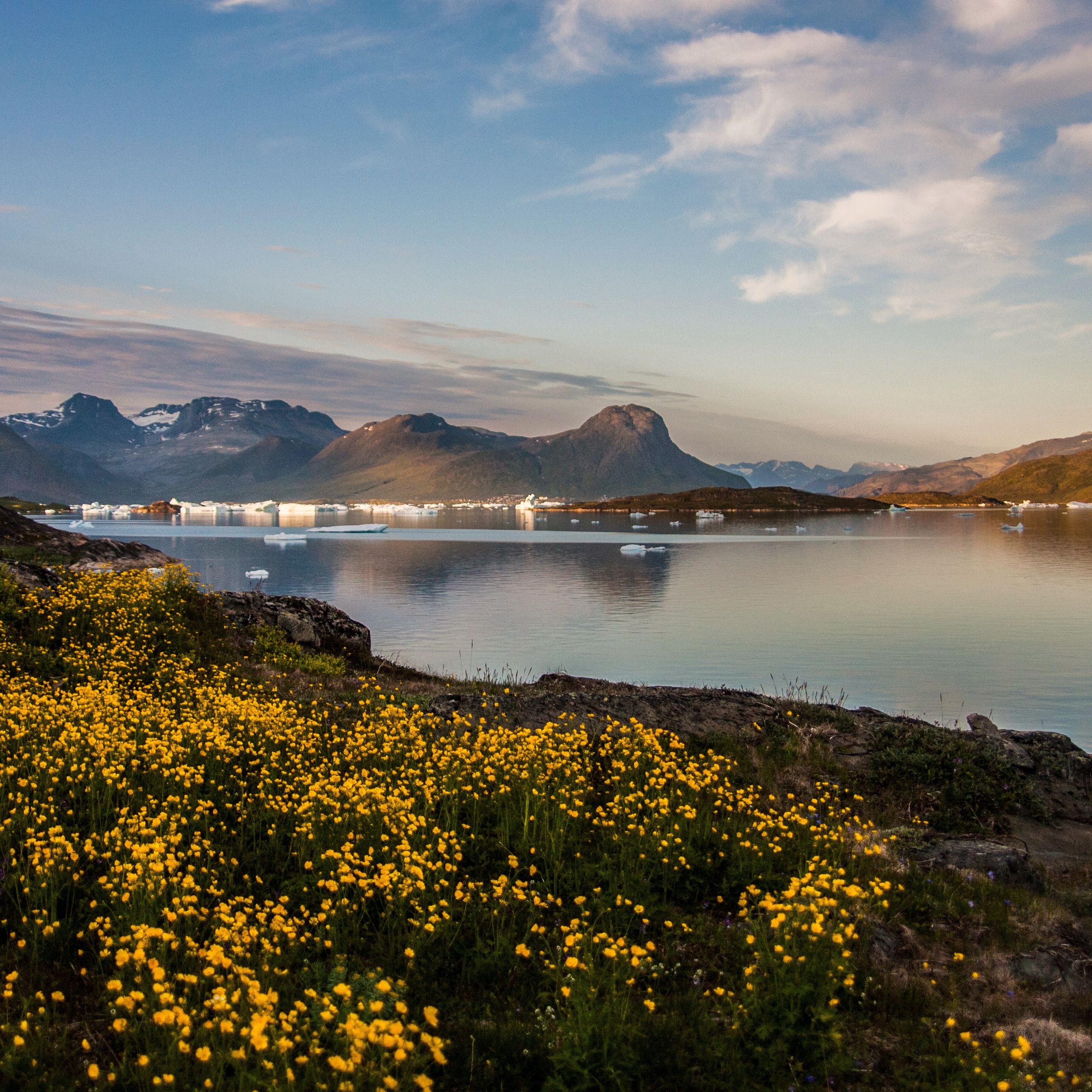 Devant des montagnes escarpées s'étendent de verts pâturages avec de petits élevages de moutons. Des icebergs blancs scintillants flottent dans les fjords profonds. Le sud du Groenland se prête à de longues randonnées, avec toujours de superbes vues sur les icebergs à la dérive ou sur la mer ouverte. Ici, les colonies vikings historiques côtoient les colonies inuites d'aujourd'hui. Les maisons groenlandaises colorées sont des taches de couleur vives dans le paysage.