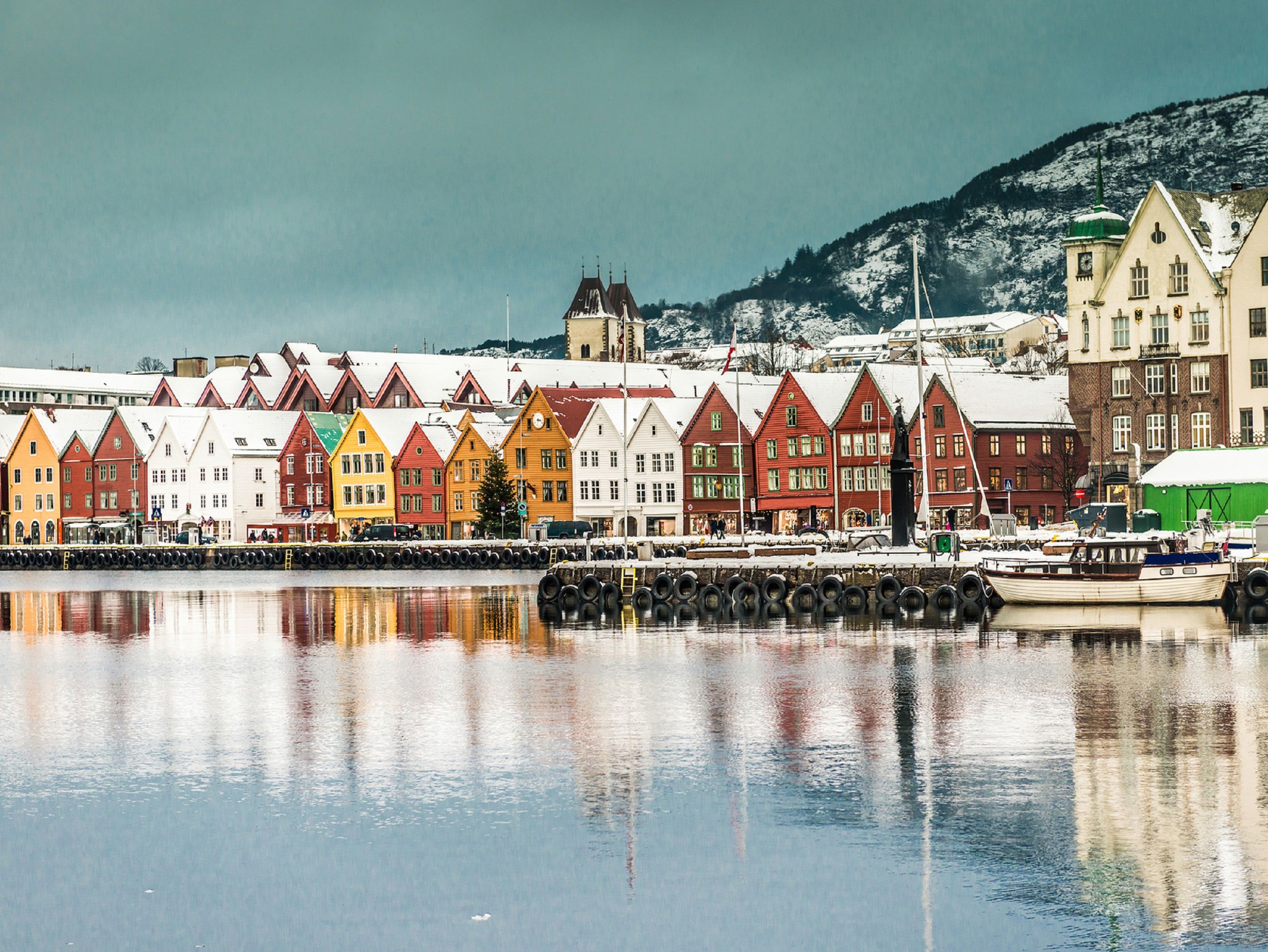 Journée libre à Bergen. Visitez le marché aux poissons et promenez-vous le long des maisons hanséatiques de Bryggen, sur le port. L'église de Fantoft, située à l'extérieur, le musée en plein air "Gamle Bergen" avec ses bâtiments des 18e et 19e siècles ou l'aquarium de Bergen, situé au centre, méritent également une visite. Le soir, embarquement sur votre bateau postal.
