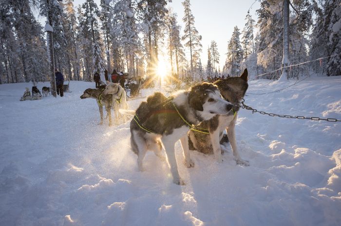 Ceux qui préfèrent être tiré par des huskies trouveront leur bonheur dans un safari en traîneau à chiens. Un sentiment de liberté se répand quand on se lance à travers la forêt hivernale avec son équipe; autour de soi rien d'autre que le silence – hormis le halètement des chiens. Notre court métrage sur Youtube donne un bon aperçu des activités en Laponie finlandaise.