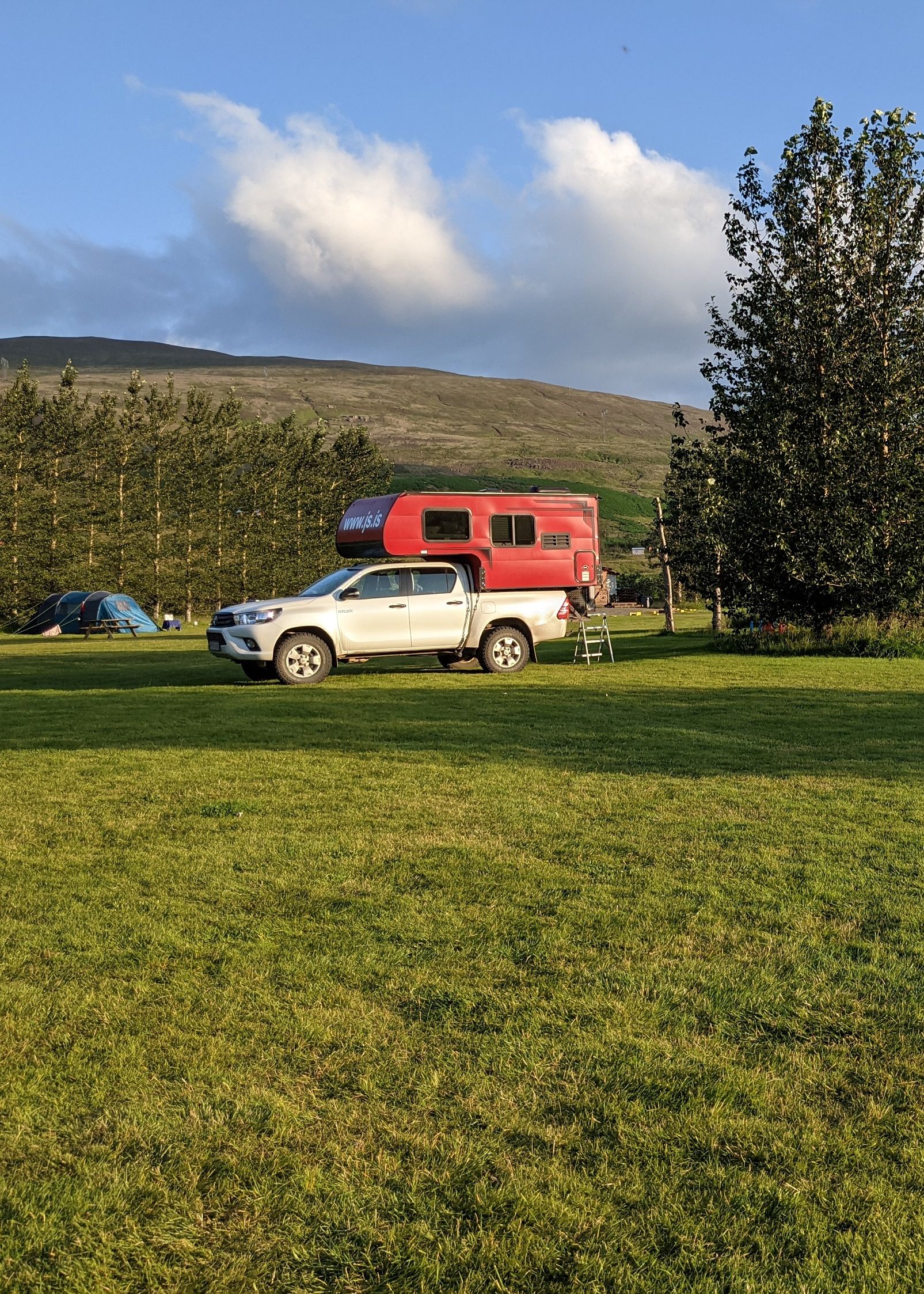 Le prix ne comprend pas la taxe islandaise sur les aires de camping (400 ISK/env. Fr. 2.70.- par carte/nuit) qui doit être payée directement sur place au camping.