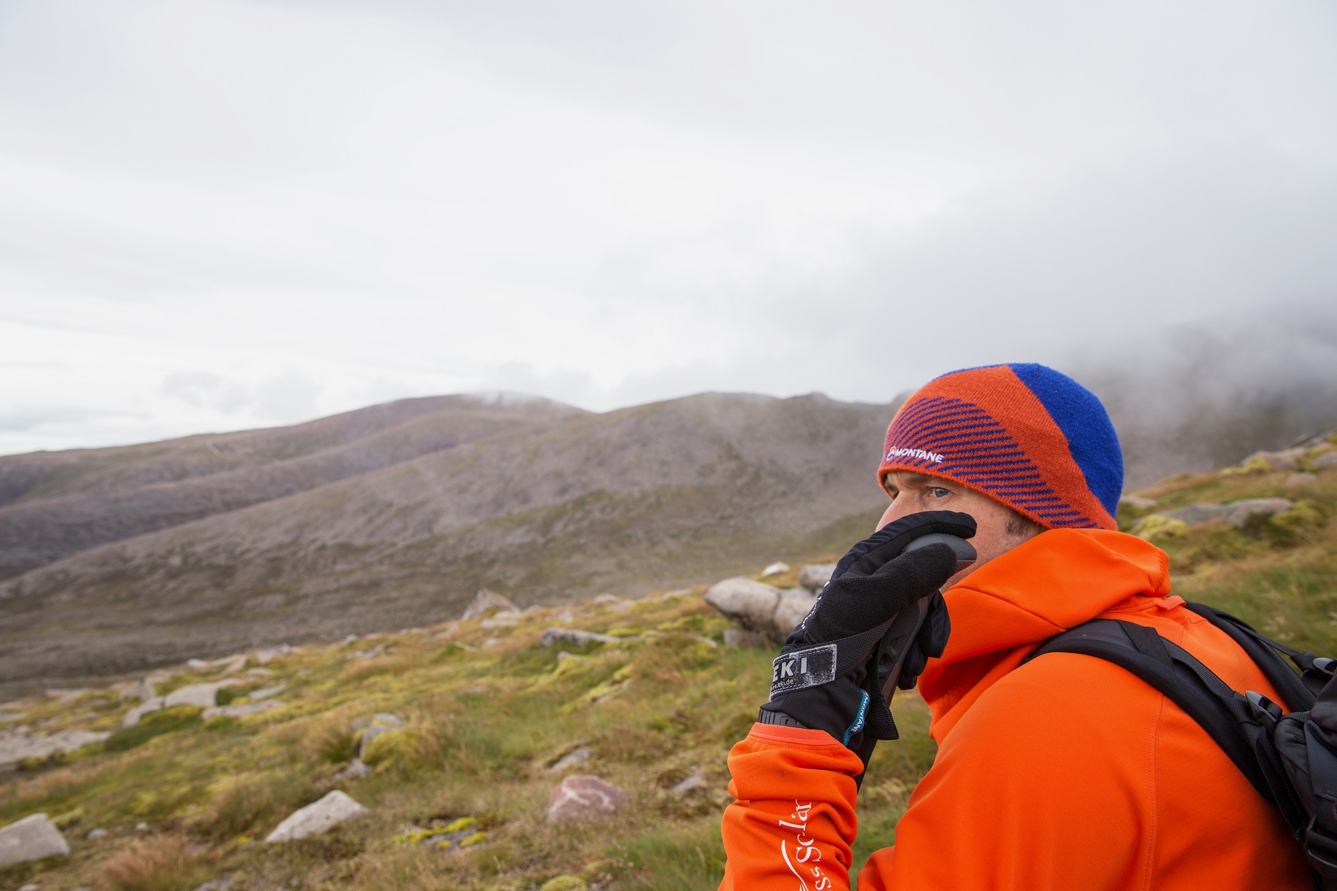 Le vent bloque à l'avant, pousse par derrière, puis il faut grimper à flanc de montagne sur la chaîne des Cairngorms. Nous ne voyons rien, rien du tout. Mais nous entendons le vent. Il siffle et hurle comme s'il voulait nous porter à Ben Macdui de toutes ses forces. Ben Macdui culmine à 1'309 mètres d'altitude et c'est mon objectif - le premier Munro que je vais escalader, ici dans les hautes terres du sud, dans le parc national de Cairngorm près d'Aviemore. Quelque part là-haut, le fantôme écossais Nebel veille. Devant moi, la veste orange de Mark, mon guide, est la seule tache de couleur et mon seul point de repère. Mark vient de la région et a arrêté de compter les Munros qu'il a déjà couronnés.