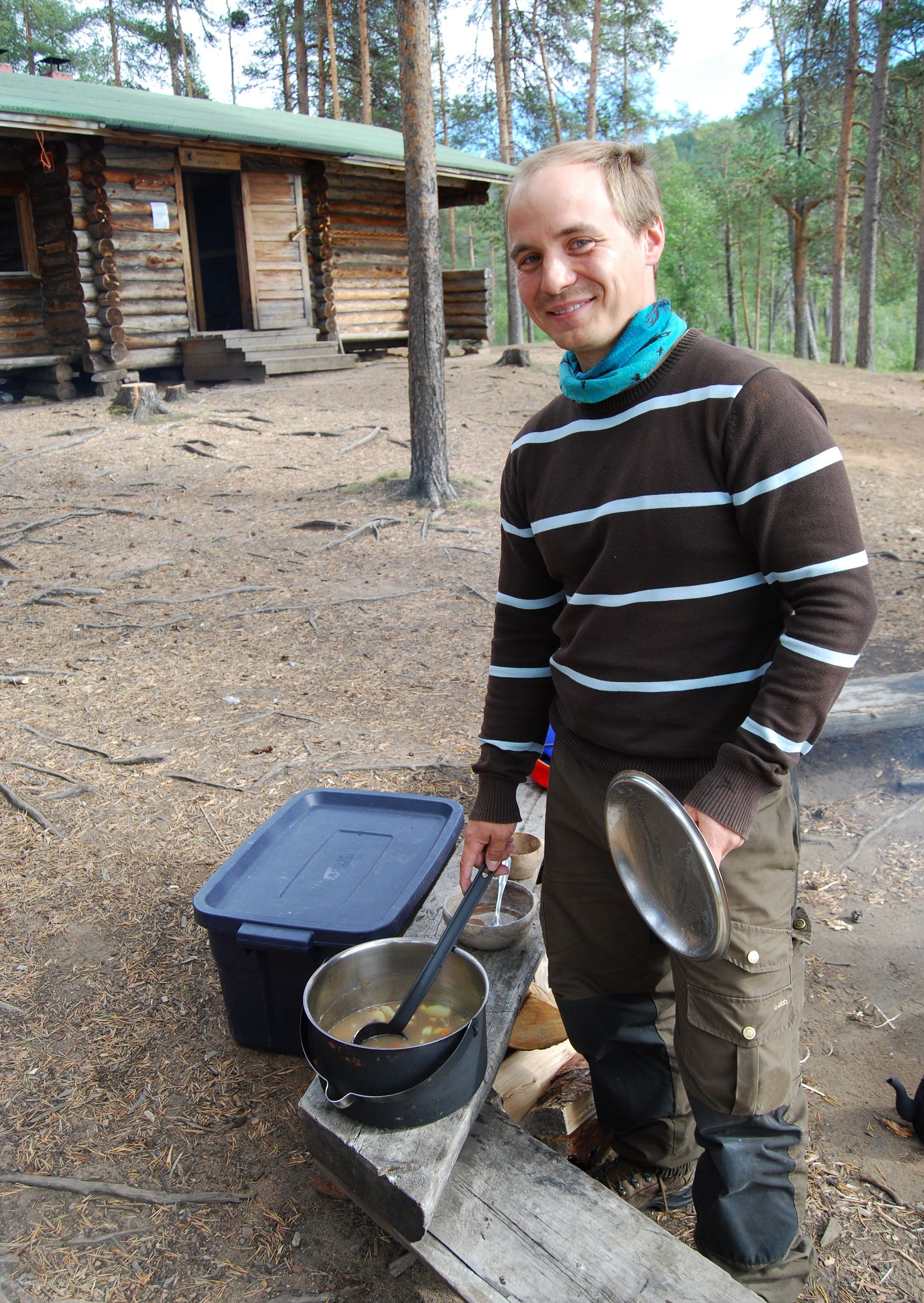 «Puis-je vous chanter un joik?» Cette question est inattendue. Il y a quelques instants, le jeune Aslak Paltto parlait encore des bases de l'élevage moderne des rennes lorsqu'il interrompt soudainement son discours et nous regarde avec impatience. Bien sûr que oui. Nous sommes assis sur une rive du Lemmenjoki. La rivière sillonne paisiblement le parc national qui porte son nom dans le nord de la Laponie finlandaise. Des épicéas imposants se balancent doucement dans le vent. Notre regard vagabonde sur l'eau qui ondule tranquillement. Nous venons de terminer notre repas de midi, simple mais très savoureux. Sur le feu ouvert, Aslak a réchauffé une soupe préparée par son père à la maison. Elle est composée de viande de renne, de pommes de terre et de légumes. Il a également servi le pain de seigle traditionnel avec du beurre et du fromage. Pour accompagner le café que notre guide a fait infuser dans une marmite en fonte posée direcement sur le feu, il nous propose du gâteau fait par sa mère.