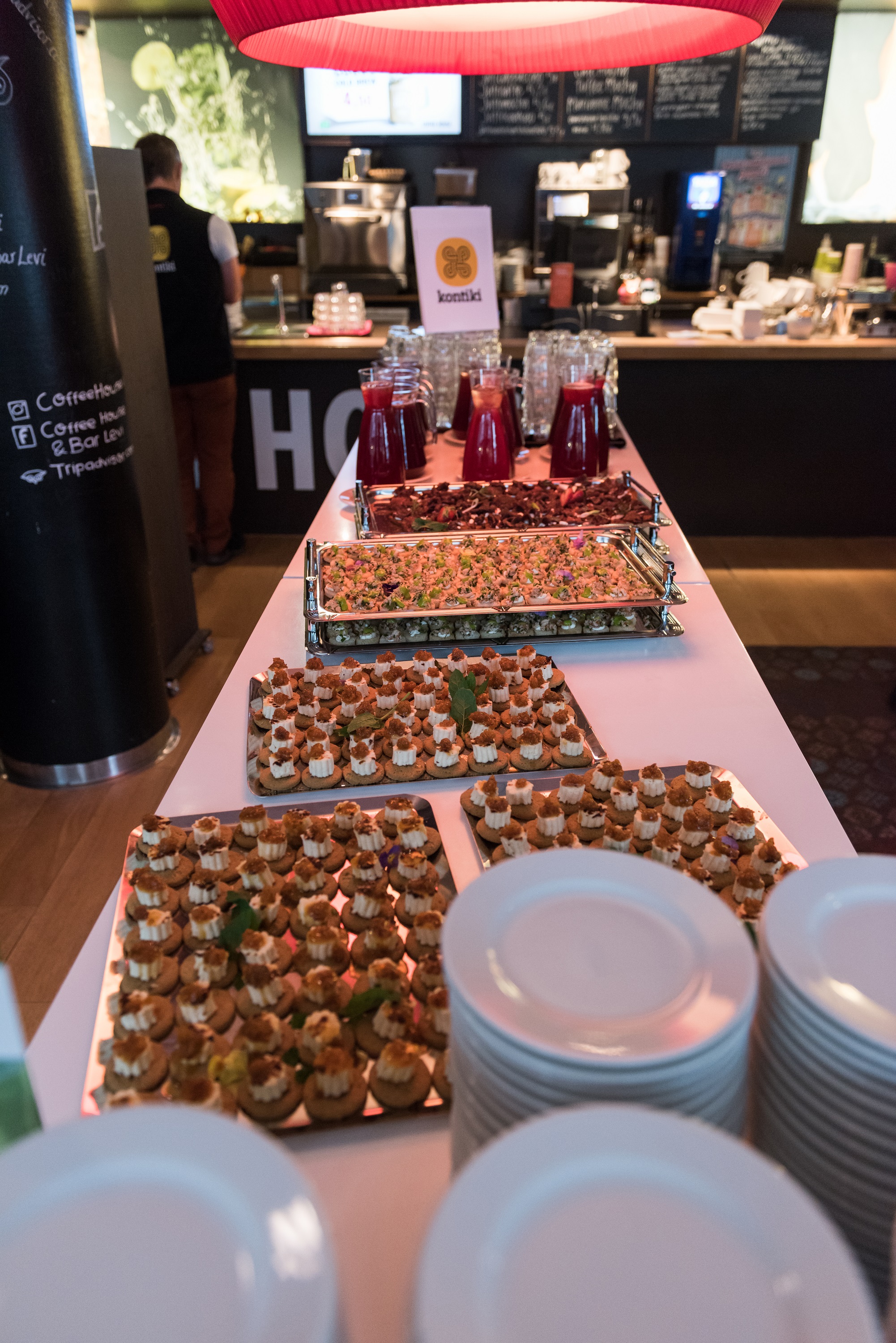 Enfin, les premiers invités arrivent aujourd'hui avec le vol direct Kontiki. Je me rends à l'aéroport. Et bientôt, je me retrouve devant 150 personnes qui ont hâte d'être en vacances dans le Grand Nord. Alors que je les accueille encore dans le hall de l'aéroport, je remarque qu'ils s'apaisent et laisse derrière eux la vie quotidienne trépidante. Le soir, mon collègue et moi accueillons nos hôtes avec des snacks typiques de Laponie pour un apéritif de bienvenue. Il y a de la viande de renne, des écrevisses locales et des myrtilles. Mmmmhhhh !