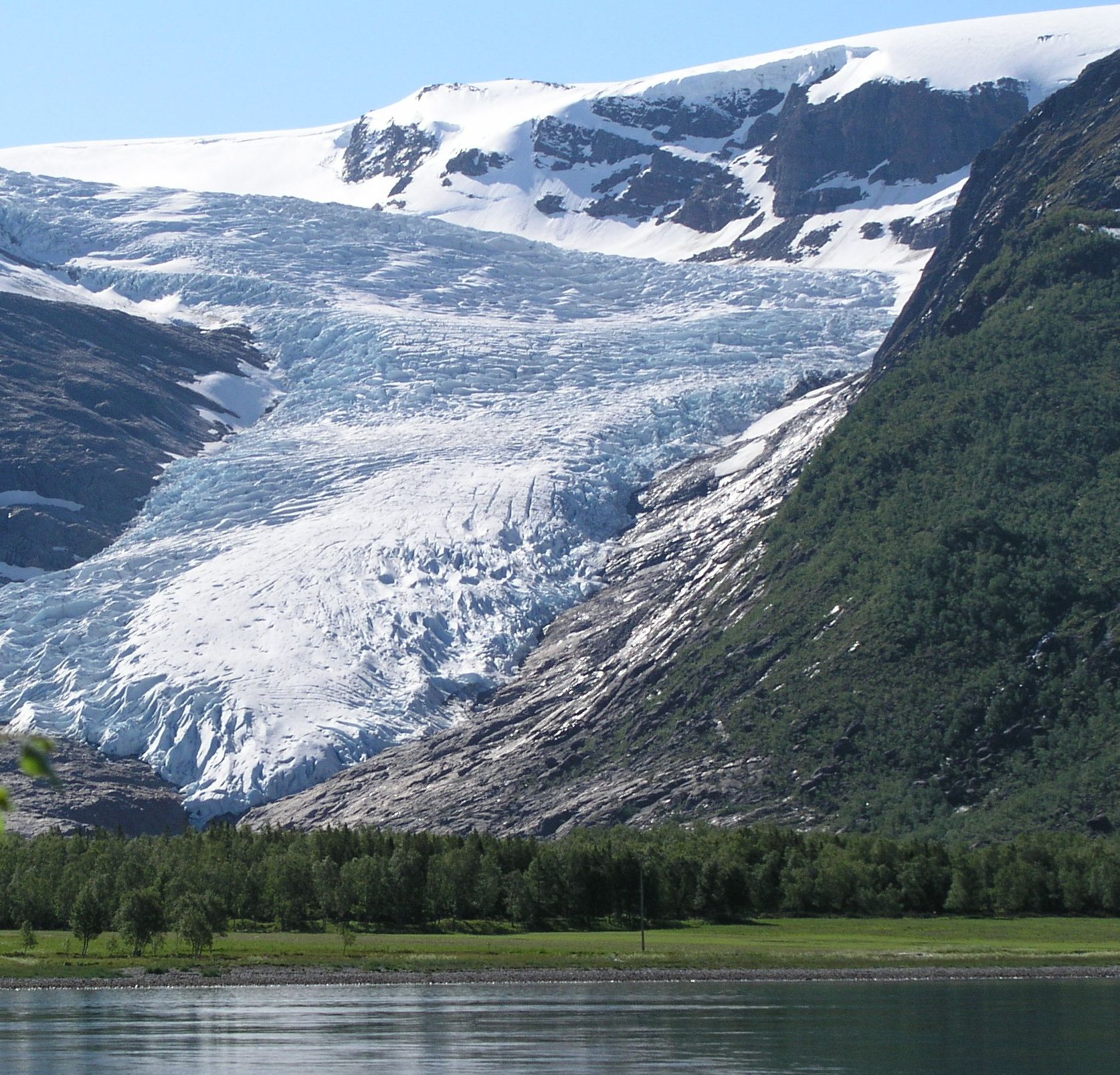 Environ une demi-heure avant Ørnes nous changeons pour un bateau plus petit. Cela nous amène proche du glacier de Svartisen, le deuxième plus grand glacier de Norvège. N'oublions pas notre appareil photo, car à côté de l'impressionnant paysage glaciaire, nous avons la chance de rencontrer des aigles à queue blanche.