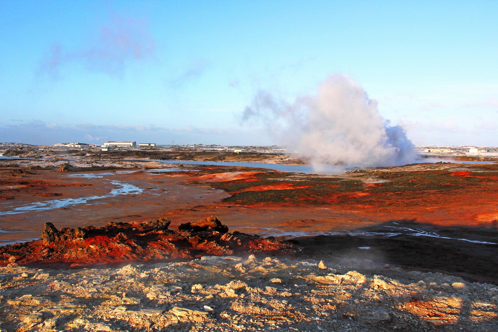 L'eau de la source thermale est chaude à 100 degrés et sert à chauffer les bâtiments depuis 1925. Devant moi, il y a de longs pipelines. Ils transportent l'énergie jusqu'à 74 kilomètres vers Hvanneyri, Borgarnes et Akranes. A destination, l'eau est encore entre 65 et 77 degrés. "L'eau chaude en Islande est la moins chère au monde", assure Gislí Olafsson, un guide touristique qui est né a grandi en Islande. En fait, il y a des sources un peu partout sur l'île. Au sud-ouest, par exemple, dans la ville de Geysir ou sur la péninsule de Reykjanes. Autour de Reykjavík, les trottoirs sont chauffés en hiver, les piscines, certaines parties de l'aéroport et dans certains hôtels, l'eau de source jaillit directement du robinet. Certes, l'eau sulfureuse ne flatte pas autant le nez, mais elle est saine et bonne pour la peau.