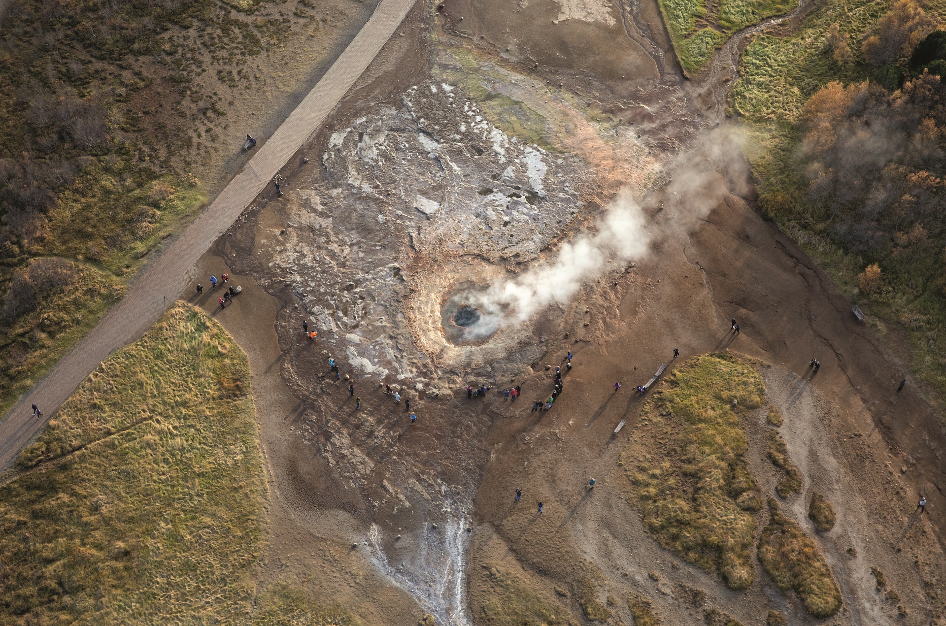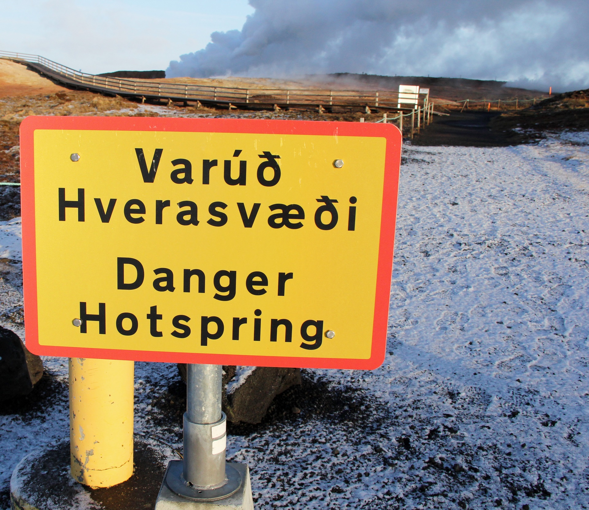 Ça bouillonne et ça siffle. De denses colonnes de vapeur s'élèvent dans le ciel rose-pourpre du soir. Personne à l'horizon. La source thermale Deildartunguhver est à peine indiquée et donc peu connue des touristes. Je trouve l'endroit grâce aux indication d'un Islandais : Après le pont à gauche, après la maison en bois rouge, le long du champ de lave. Dans mon esprit, je me vois déjà allongé dans la piscine naturelle et relaxant, entouré de champs de lave, de neige et de glace. Mais quand les Islandais parlent de "sources chaudes", c'est de l'endroit d'où vient leur énergie. Et plus personne ne veut s'y baigner.