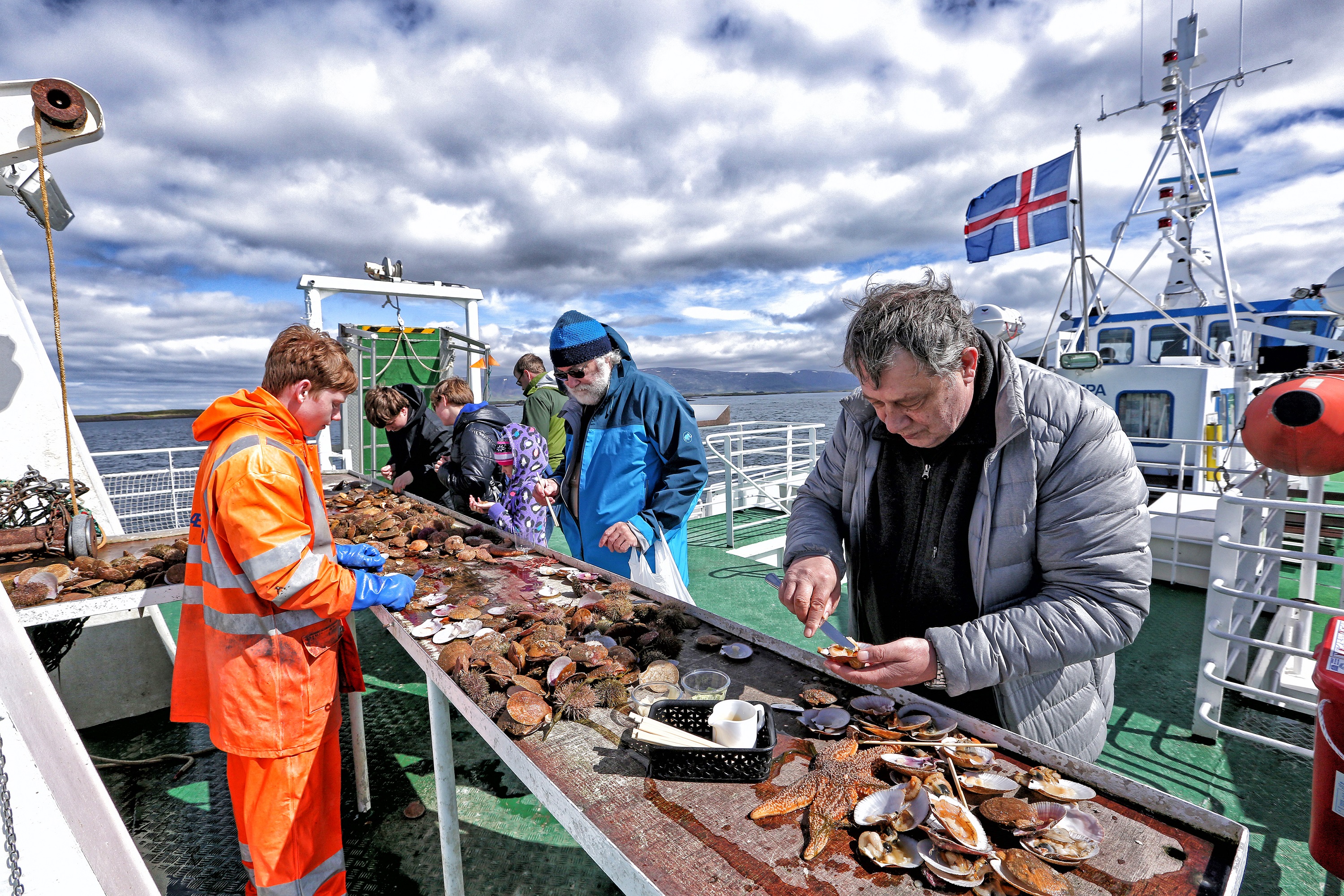 Nous passons deux nuits à Stykkishólmur, une véritable ville portuaire comme les livres d'images. L'excursion en bateau nous emmène dans le monde insulaire de Breiðafjördur. Les quelque 3'000 îles abritent un immense paradis d'oiseaux. En plus, les sushis Viking promis. Les noix de St-Jacques fraîches viennent d'être pêchées hors de l'eau à l'aide d'un râteau. De la mer, dans la bouche, il n'y a pas de chemin plus frais.