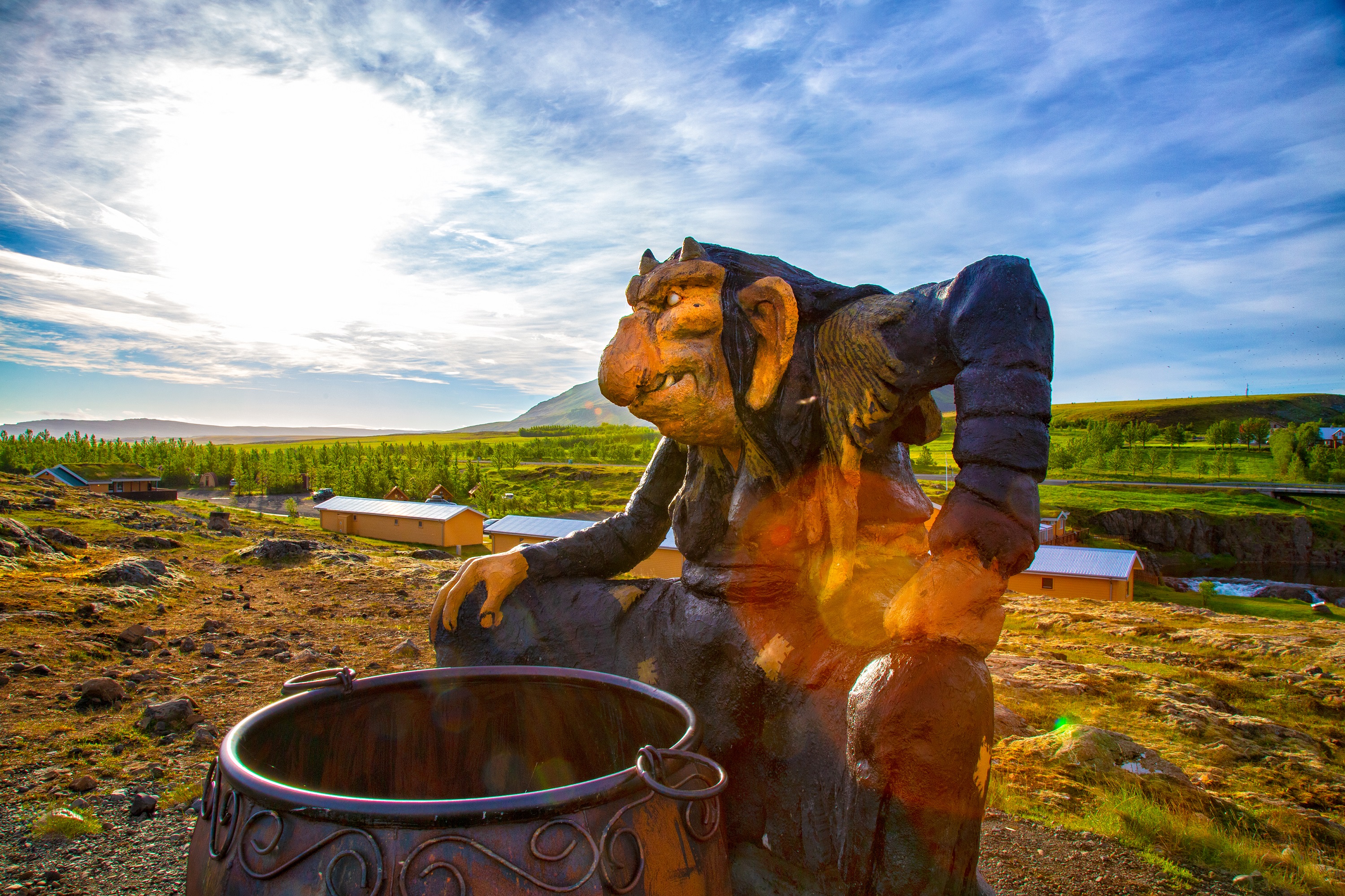 Un pont enjambe la rivière Grimsá et une large cascade nous accueille. Mais ce qui est encore plus remarquable, c'est l'énorme troll sur la colline au-dessus du complexe hôtelier rural, composé de bâtiments plats ou de cabanes originales d'une seule pièce. Il y a aussi des sentiers de trolls, des histoires de trolls, des figures de trolls. "En 2001, nous avons acheté la propriété, elle a immédiatement pris le relais ", explique le propriétaire de l'hôtel de campagne Fossatún, Steinar Berg. "J'ai quitté mon ancien travail de producteur de musique et j'ai commencé une nouvelle vie. La ferme et la cascade des trolls m'inspirent à écrire des histoires." Steinar est maintenant un auteur bien connu de plusieurs livres avec des histoires de trolls.