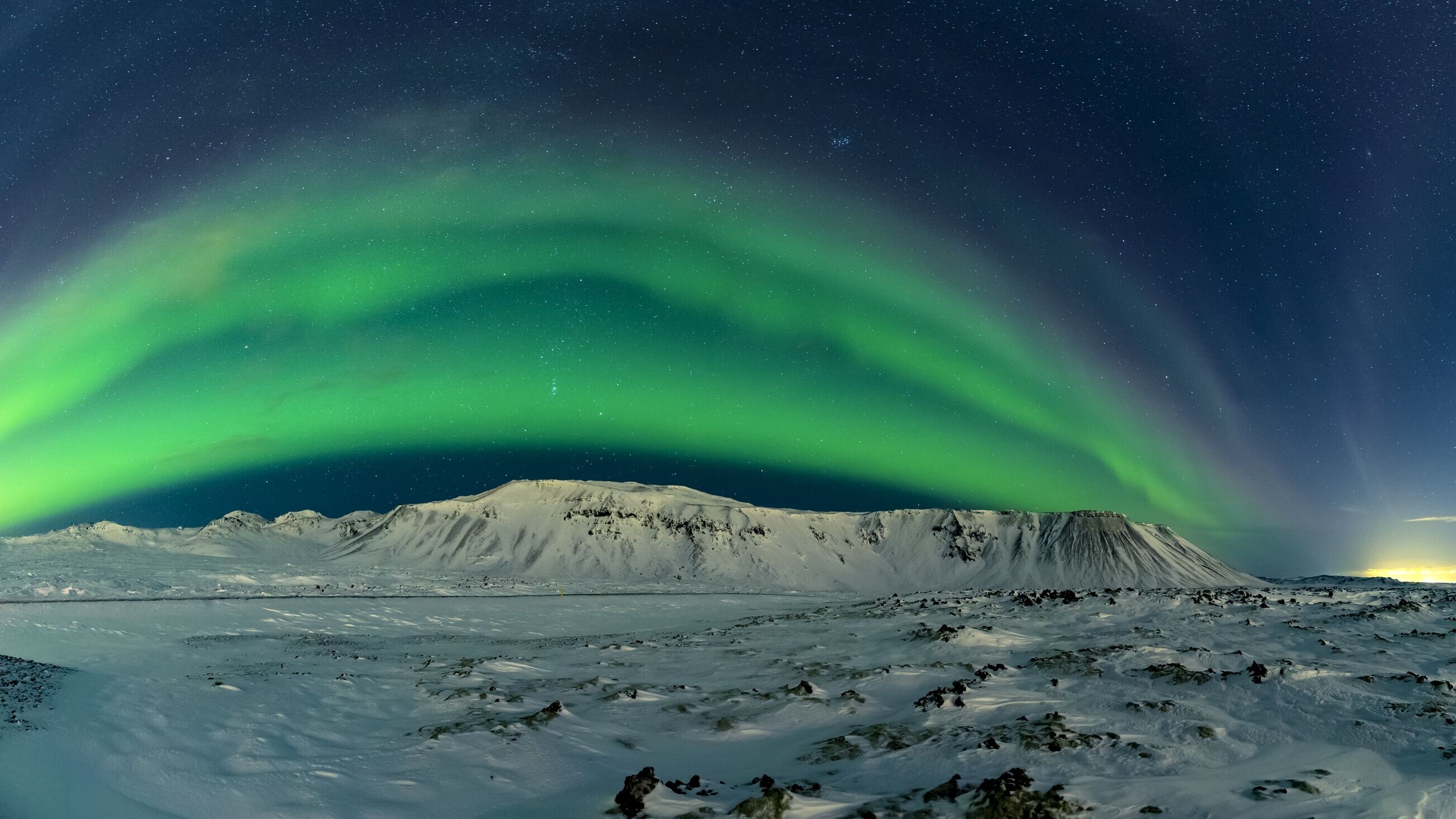 Nous partons ensuite avec la voiture de location - après 30 minutes de route, nous nous arrêtons déjà à la première curiosité, devant la cascade des dieux, Goðafoss. Que ce soit dans une tempête de neige, baignée dans la lumière dorée du soleil ou dans la nuit polaire silencieuse, cette chute d'eau attire tous les regards par sa force et son énergie. Quelques kilomètres plus loin, nous arrivons dans la région de Mývatn, où nous passerons les prochains jours.