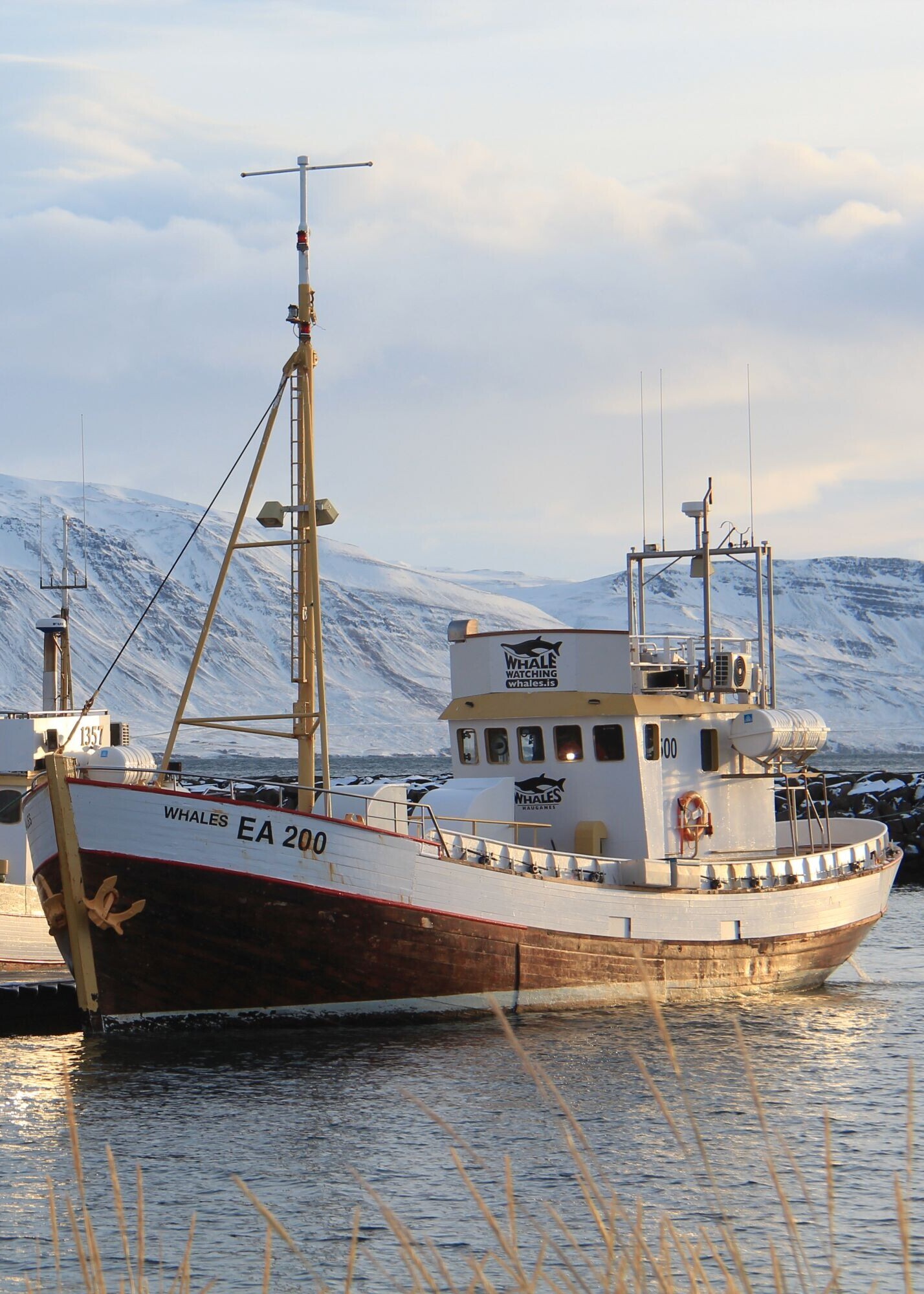Sur le chemin du retour, un autre moment fort nous attend à Hauganes : un safari à la baleine avec le plus ancien prestataire d'excursions d'observation des baleines en Islande. Nous partons avec un vieux bateau de pêche. En effet, nous voyons deux baleines à bosse. Mais même si on ne voit pas d'animaux, cela vaut la peine : nous admirons la vue magnifique sur le fjord et sur les « montagnes Toblerone » - je les appelle ainsi car leurs sommets me rappellent ceux de l'emballage du célèbre chocolat.