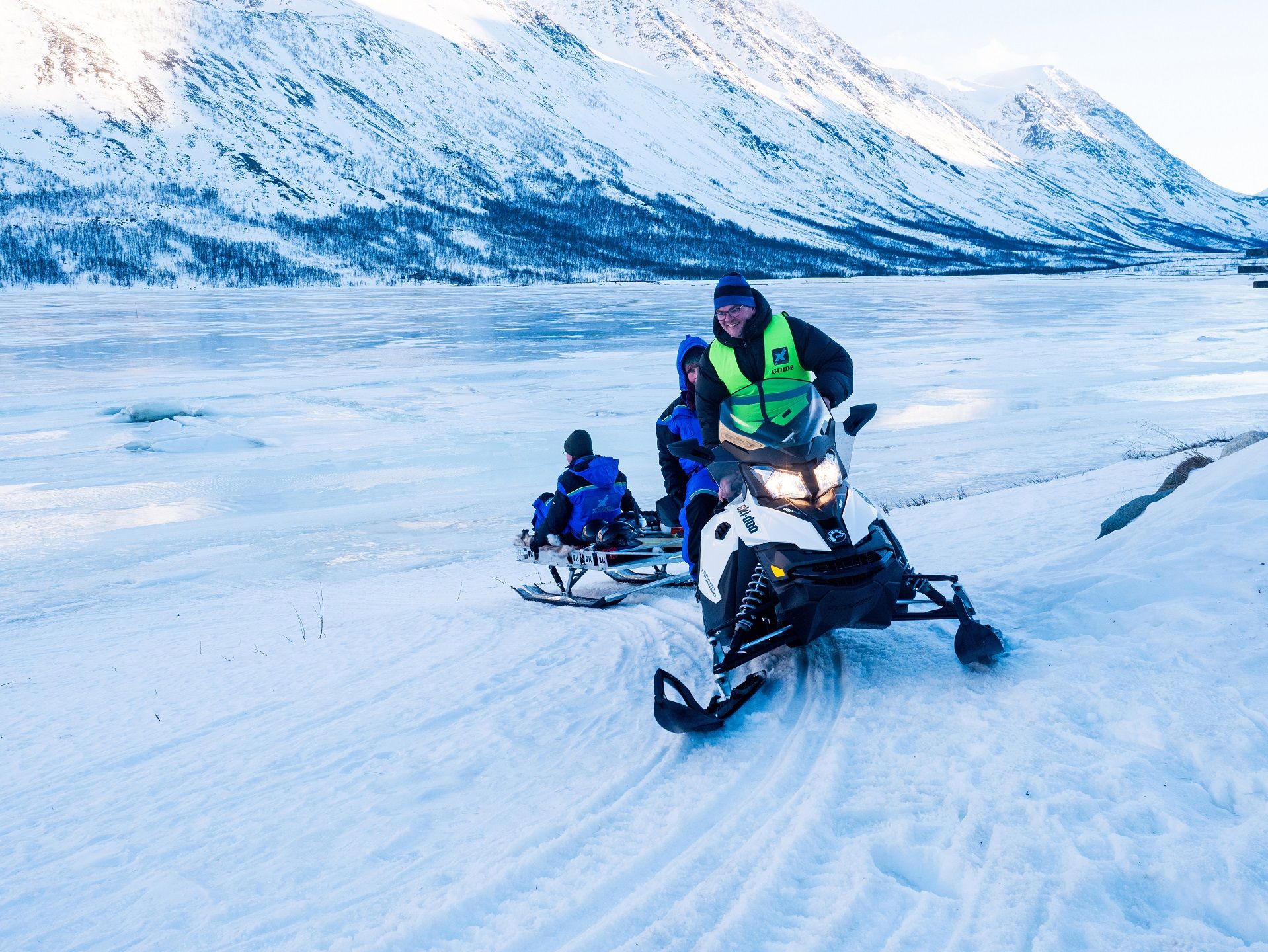 Dans une région qui vit principalement de la pêche, nous aussi - accompagnés d'Anglais - nous voulons tenter notre chance. Après une courte randonnée le long du Lenangsstraumen dans la vallée, le mari de Miriam, Bent-Jørand, nous prend avec sa motoneige. Nous grimpons sur la remorque, nous nous laissons tomber sur la peau des rennes. Le véhicule zigzague entre les petits bouleaux sur la taïga et redescend rapidement sur le fjord gelé. Lorsque la remorque touche la glace, nous retenons pendant un moment notre souffle. Bent-Jørand sourit : «La glace a plus d'un demi-mètre d'épaisseur, ne vous inquiétez pas». Au milieu du fjord, on se positionne près des trous de glace, on lance l'appât, on attend. Enocre et encore. Il ne se passe rien. Pas d'agitation. J'attends. «D'accord, on va percer un nouveau trou», décide Bent-Jørand. La neige souffle dans toutes les directions,