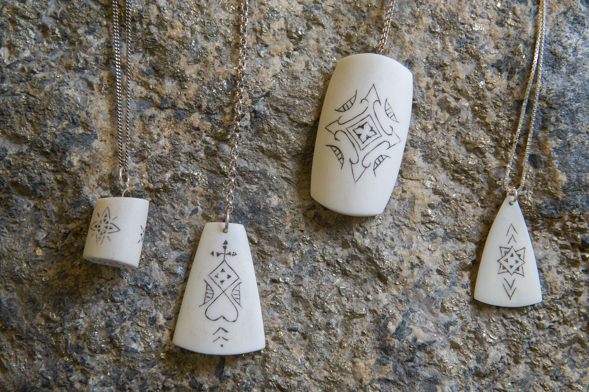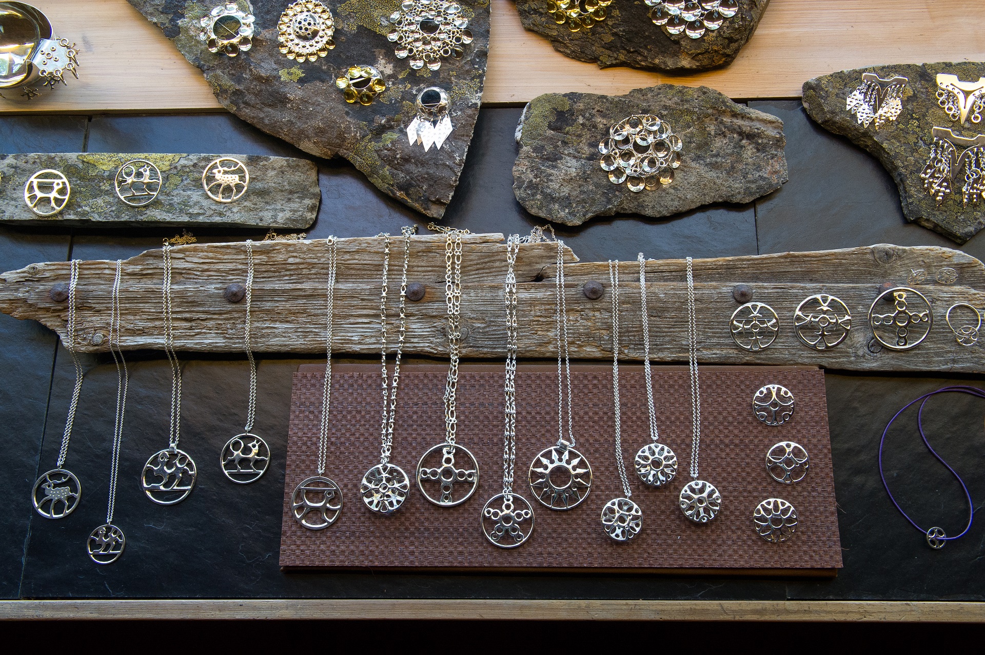 Elle rit et agite ses mains : «Ne l'imagine pas trop romantique! Chaque peuple, chaque groupe a ses artistes; des gens qui veulent et peuvent être actifs sur le plan créatif - ou qui considèrent qu'il est de leur devoir de contribuer à ce don.» Dès le début, elle s'est inspirée de la nature dans la toundra pour créer ses bijoux. «Maintenant que je vis ici depuis si longtemps, je suis toujours là quand les bouleaux poussent au printemps. C'est ce qui façonne mes bijoux.»