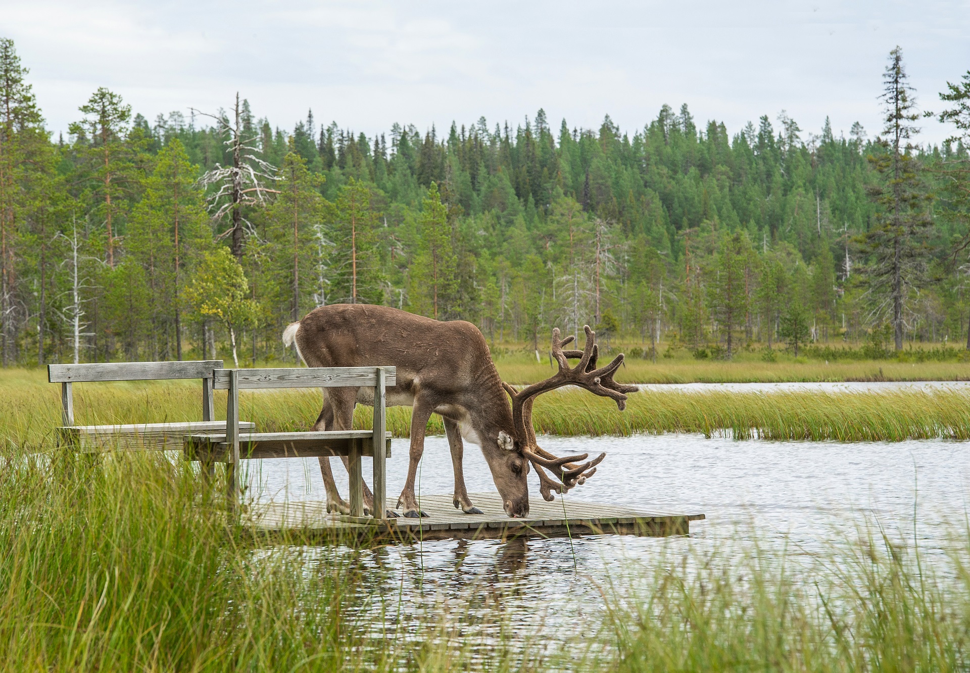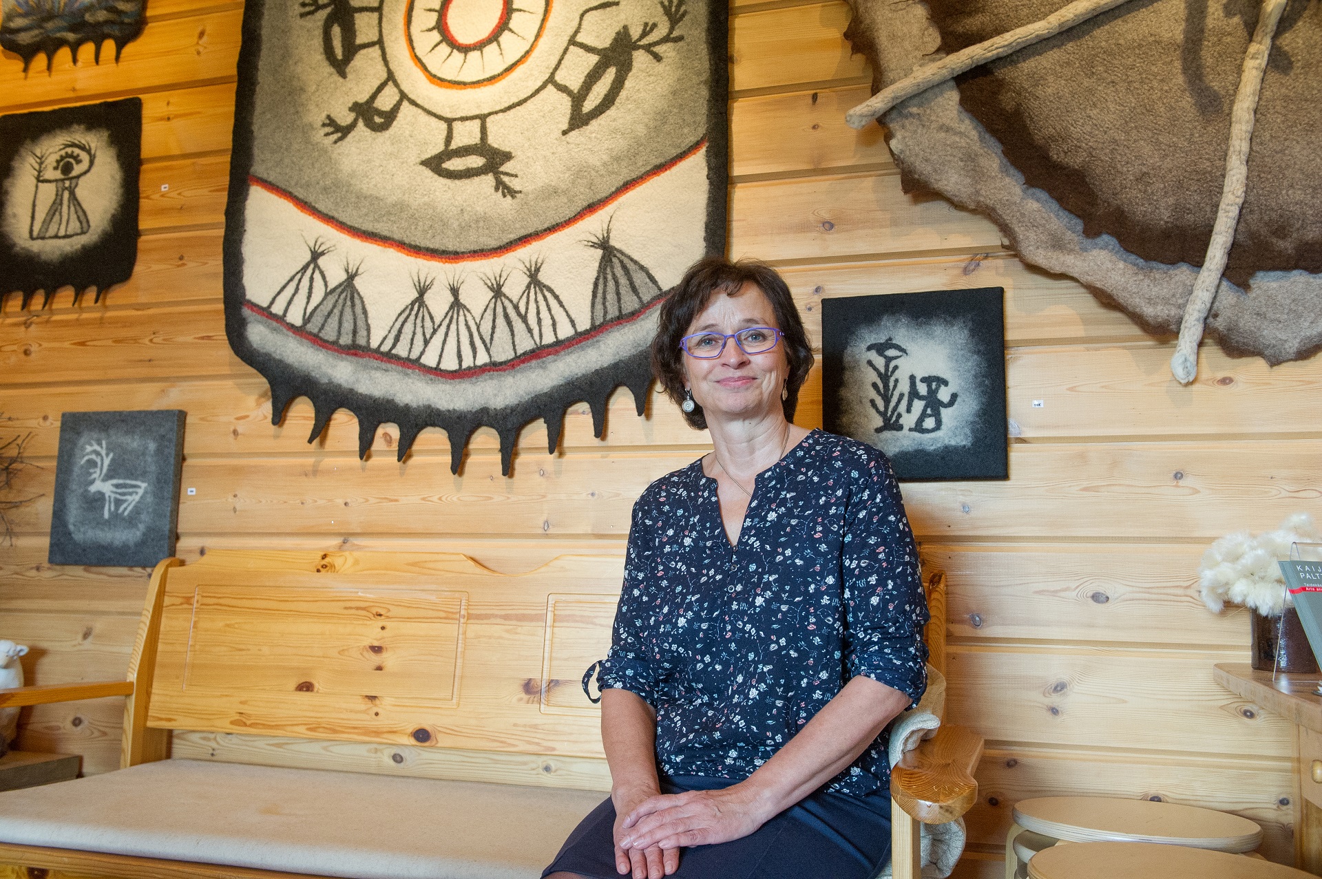 «Ateljee» est sur la planche en bois devant la maison rouge. En bas de la pente, la rivière Lemmenjoki chante sa chanson d'amour, quatre canoës se tiennent prêts sur le rivage, les rennes broutent, près de la pension il y a une chaise longue. Kaija Paltto, artiste feutre de renommée internationale, vit et travaille dans cette idylle. Elle vient de passer la porte, de cligner des yeux pour se protéger du soleil et de dire au revoir à un groupe d'invités venus d'Allemagne, son atelier de feutre est terminé. Leurs peintures murales en feutre sont suspendues dans la salle d'exposition : un renne est visible devant le soleil de minuit qui brille au-dessus des collines verdoyantes de la Laponie dans le ciel rouge. «Une Australienne a dit que la photo lui rappelait sa patrie», sourit Kaija.