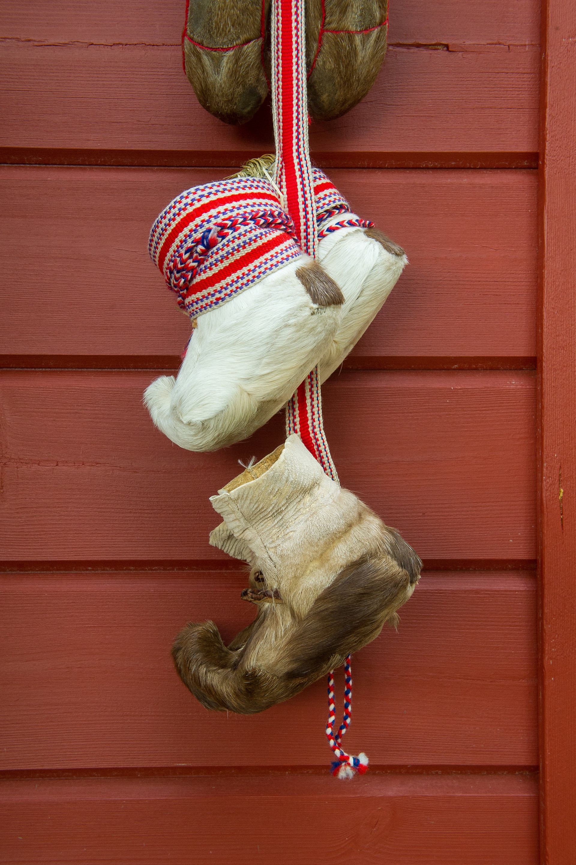 Kaija - qui n'est pas née Sami - est profondément immergée dans la culture par son mari. Dans le cadre de la porte, elle a accroché les premières chaussures en cuir de renne de ses enfants. Elle prend une paire dans ses mains : «Regarde, mon cadet les portait tous les jours dans la neige et la glace quand il apprenait à marcher, et ils n'ont pas une seule fissure.» Les chaussures sont remplies d'herbe séchée dans la tradition Sami. «Cela garde les pieds plus chauds que les chaussettes », dit Kaija. Elle a fait toutes les chaussures des enfants elle-même. «C'est une tâche pénible», confesse-t-elle en soupirant. Elle a besoin de deux jours seule pour préparer le cuir.