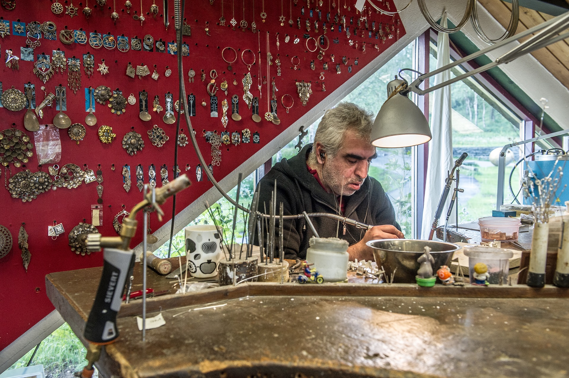 En ce matin d'août, Regine et Frank sont assis devant leur atelier, «Juhl's Silvergallery», affectueusement appelée «Oasis in the Tundra». Ils l'ont conçu et construit eux-mêmes. Un bâtiment artistique à la toiture courbée, devenu à la fois la maison et l'œuvre de toute une vie. Regine a depuis longtemps dépassé l'âge de 70 ans, mais ses yeux bleus brillent comme ceux d'une jeune fille lorsqu'elle parle de sa vie et du moment où elle a discuté pour la première fois du design des broches et des pendentifs avec les Samis: «Ce fut un tournant pour elle.» Auparavant, ils devaient se contenter de ce qu'ils obtenaient de leurs acheteurs, maintenant ils pouvaient apporter leurs propres touches, un bonheur incroyable.