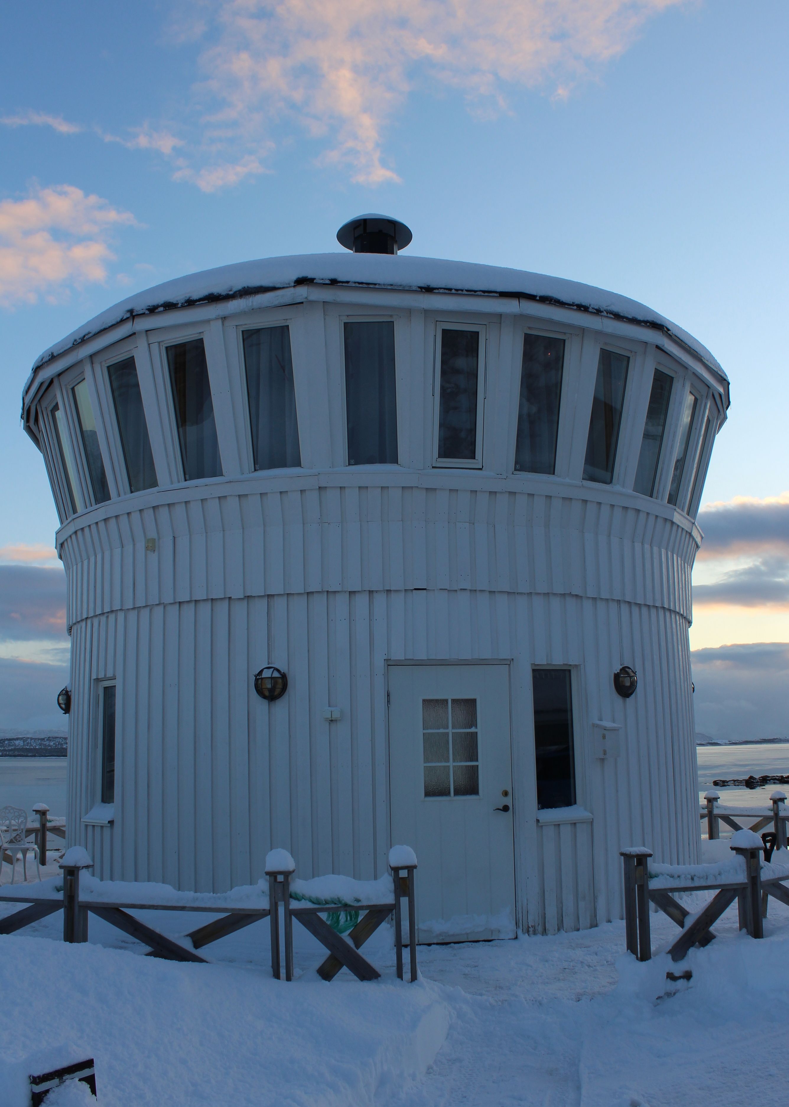 La cabine, qui a la forme d'un phare, est située directement sur la mer et est meublée avec beaucoup d'amour. Depuis la chambre ou la terrasse, il est même possible d'observer les aurores boréales. L'emplacement au bord du fjord est unique. Si les aurores boréales flottaient encore dans le ciel et se reflétaient dans l'eau, ce serait parfait. Cette année, les aurores boréales se cachaient au-dessus des nuages, mais l'atmosphère au bord de la mer était également si onirique.