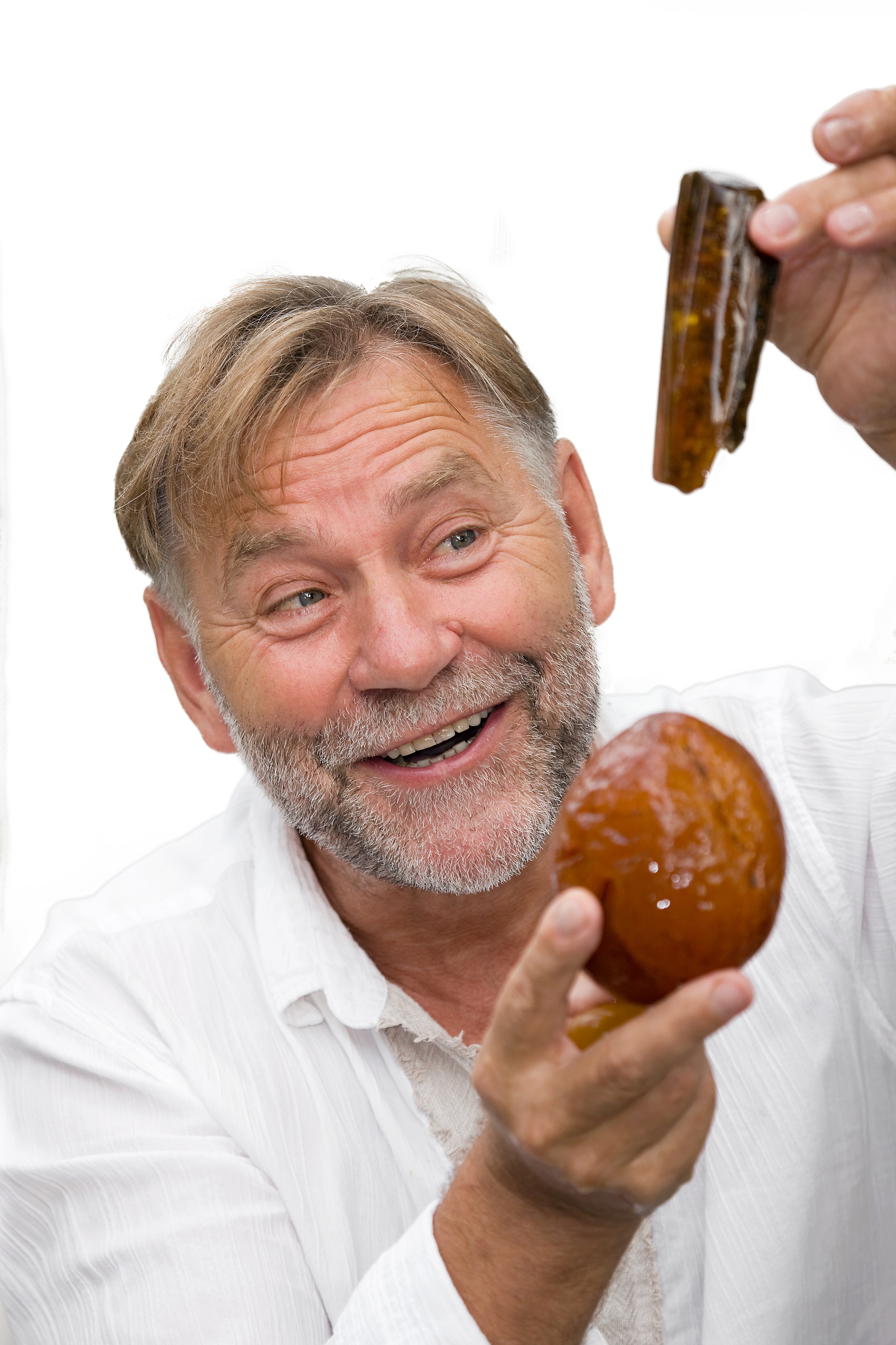 Depuis l'indépendance de la Lituanie, la dune préférée de Kazimieras Mizgiri se trouve derrière la frontière russe. Mais le "roi de l'ambre de Nida" n'a aucun mal à faire abstraction de cette situation face aux dunes impressionnantes du côté lituanien. En outre, ses affaires marchent comme sur des roulettes : Rien qu'à Nida, ce photographe de formation possède trois galeries et un musée, mais les affaires ne sont pas le seul but, nous dit-il après son troisième verre de schnaps. "En tant qu'artiste, il faut donner une âme à la pierre". Il pèse une boule d'ambre de la taille d'une balle dans ses mains. "Si une œuvre n'est que du commerce, elle ne vaut rien." Nous voulons savoir ce que coûterait ce morceau d'ambre. Kazimieras Mizgiris le regarde d'un œil sévère. "Peut-être 30'000 euros" , dit-il sans bouger. Il nous ressert un verre. "Que la vie nous donne ce qu'il y a de bon" , dit-il. "Et beaucoup de moments surprenants !"
