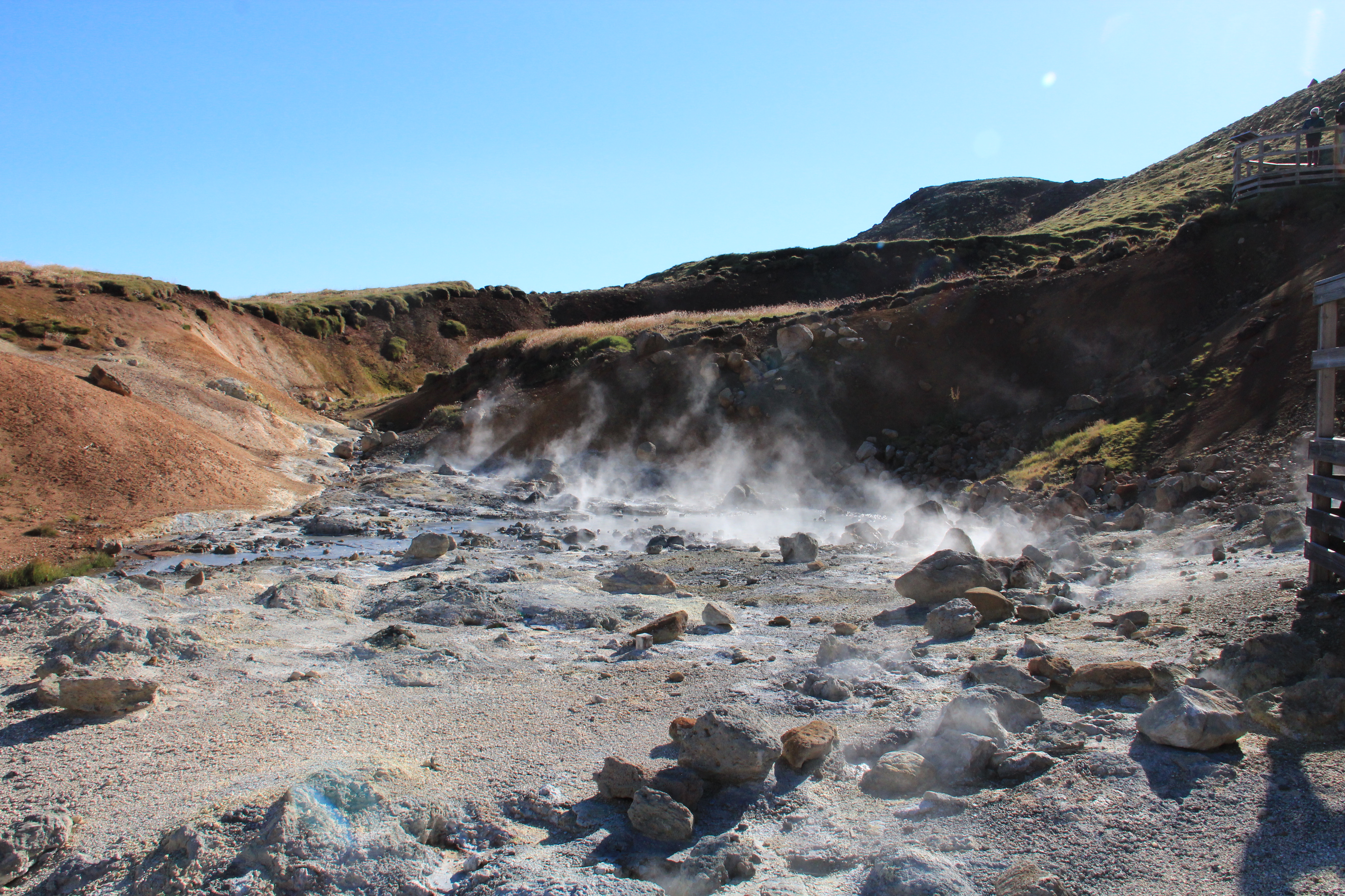Nous avons entrepris d'explorer les zones géothermiques de Seltún et Gunnuhver sur la péninsule de Reykanes. Nous étions fascinés non seulement par les odeurs, mais aussi par les sons qui se dégagent lorsque les vapeurs s'échappent. Du doux bouillonnement aux sifflements forts, tout est là. Écoutez.