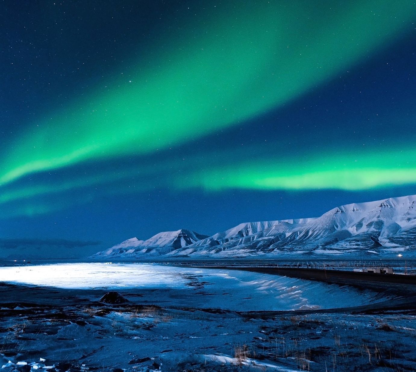 Les aurores boréales contribuent également à la couleur de la nuit polaire : Au Svalbard, si le ciel est clair et l'activité solaire suffisante, elles peuvent être observées de jour comme de nuit grâce à l'obscurité continue. Dans l'une des régions habitées les plus septentrionales du monde, on a souvent suggéré d'échanger la nuit contre le jour, car il fait "beaucoup plus clair" la nuit.