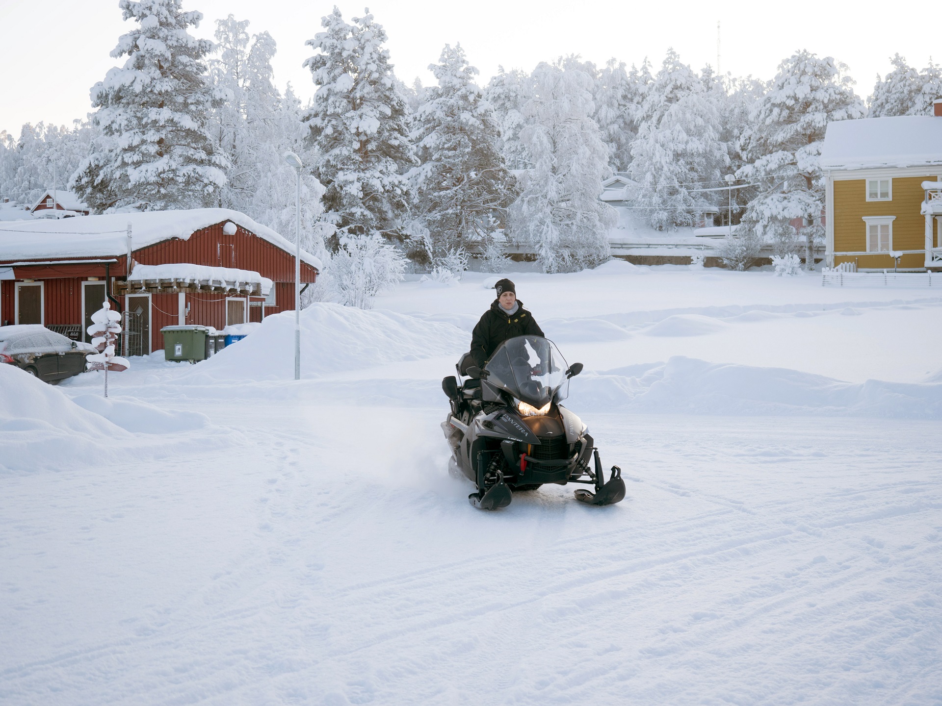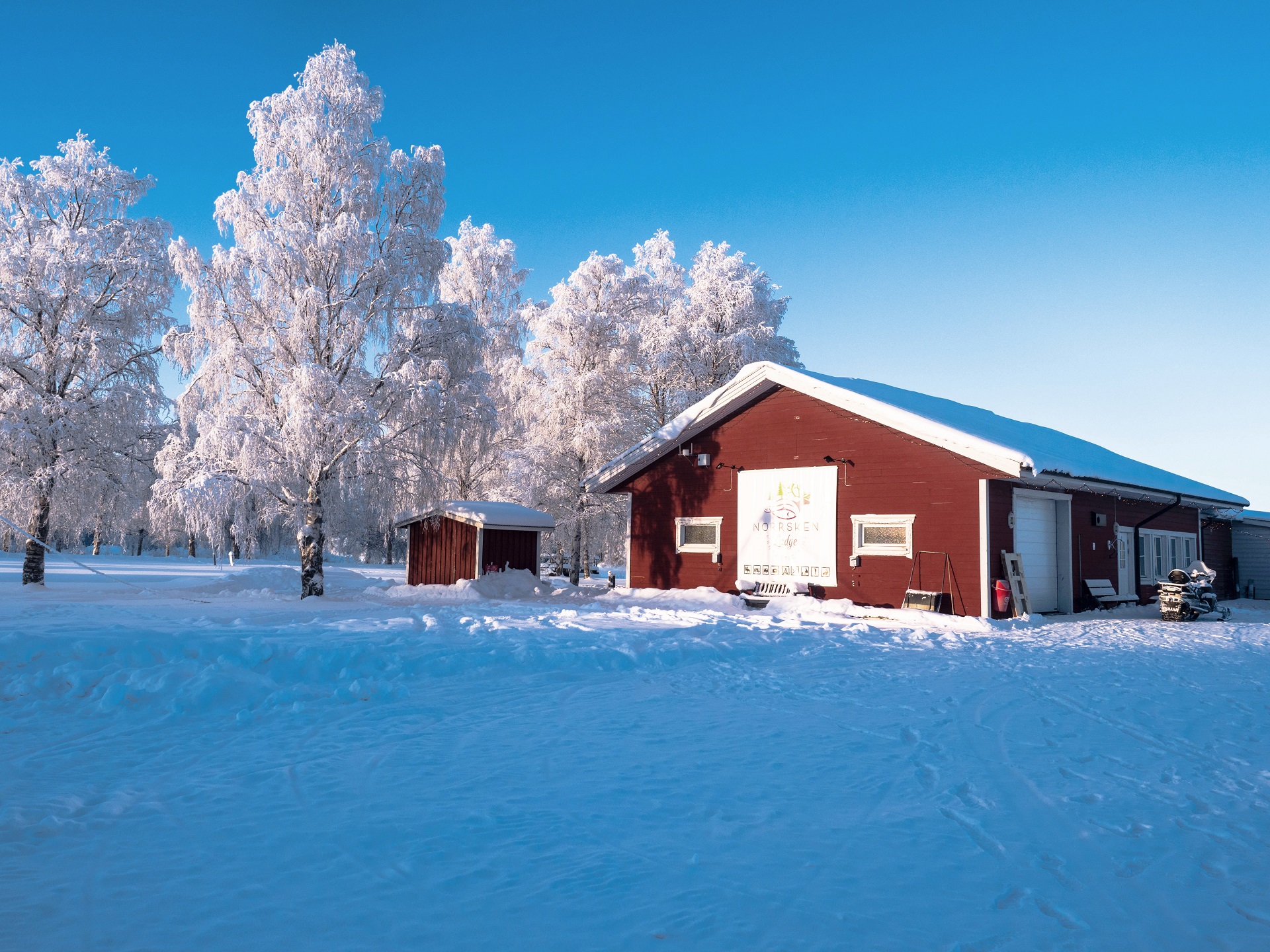 Quelques centimètres, et c'est tout. La porte ne peut s'ouvrir plus. Un rapide coup d'œil à l'extérieur en donne la raison: la neige. Des montagnes de neige! Juste devant la Stuga, le gîte de vacances. Après avoir poussé fort, l'écart est assez grand et je me faufile à l'air libre, dans le calme frais. Il a encore neigé pendant la nuit, les maisons rouges semblent prendre un bain de mousse. Une pelleteuse jaune avec chasse-neige pousse les masses de neige sur le côté, le bruit inhabituel du moteur s'immisce dans le silence. Derrière le volant, un homme est assis avec une casquette noire, une barbe et me fait signe avec un large sourire. Il pourrait facilement passer pour un fermier suisse, et c'est en partie vrai: Max Hensler vient d'Einsiedeln. Il y a deux ans, il a déménagé avec sa femme Yasmine et leurs fils Janne (6 ans) et Kimi (3 ans) à Övertorneå, dans la province de Norrbotten, au nord de la Suède, directement au bord de la rivière Tornio, désormais gelée, à la frontière de la Finlande. Ici, les Hensler ont repris le Norrsken Lodge, un lieu de villégiature avec hôtel, douze chalets et camping - ils sont accompagnés par les caméras de la chaîne de télévision SRF dans le cadre de l'émission sur l'émigration "Auf und davon".