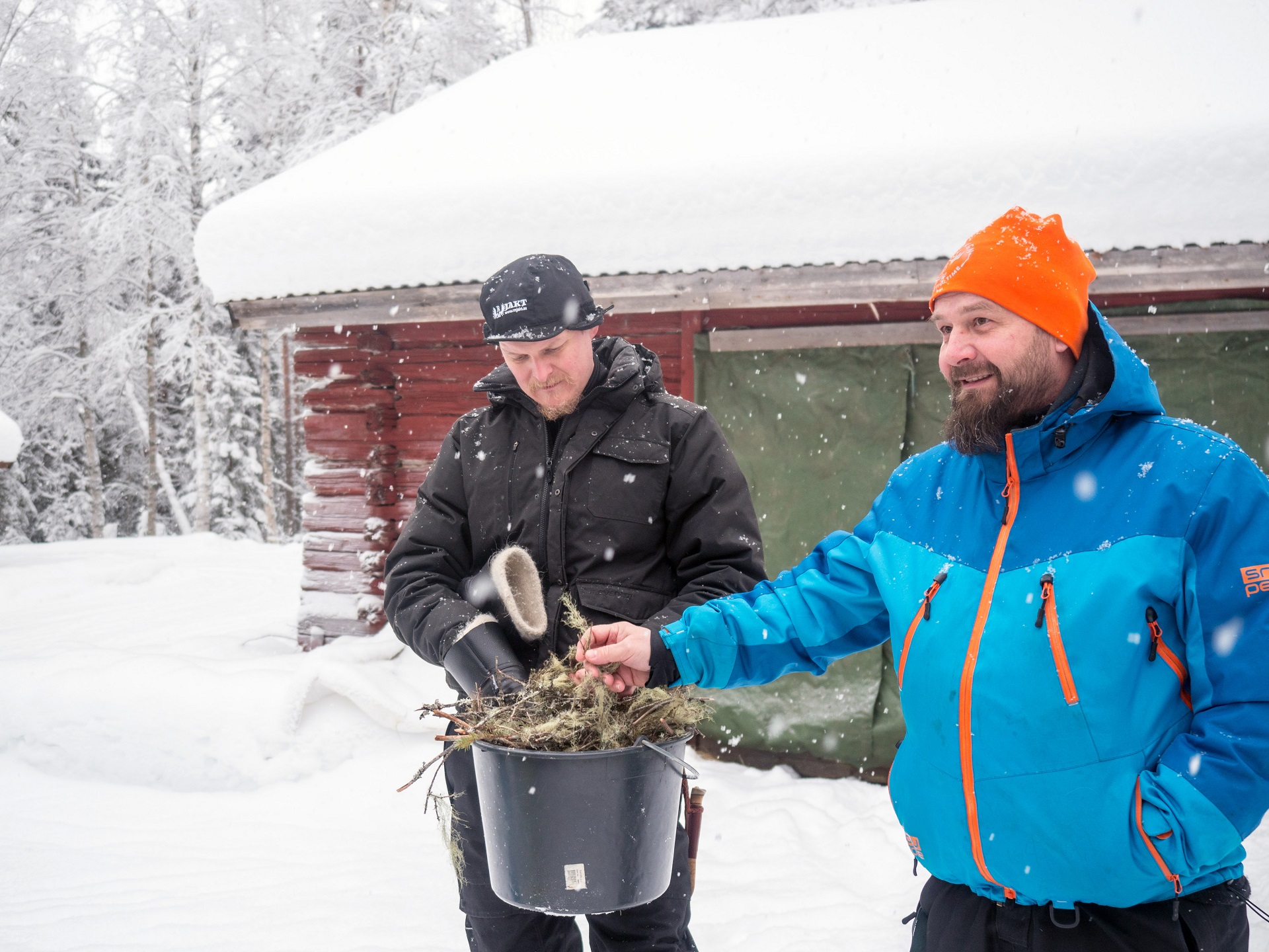 Mäx, l'hôtelier. "Bien dormi?", demande-t-il à une table, ou "Did you sleep well?", il remarque tout de suite que la carafe de jus d'orange est vide, rapporte des petits pains supplémentaires de la cuisine et s'enquiert ensuite des souhaits de chacun pour le programme de la journée. Qui veut aller voir les rennes, qui préfère faire une ranodnnée en raquettes directement depuis la porte d'entrée, pêcher sur la glace du Tornio; qui voudrait aller au sauna ou au hot hot aujourd'hui? Selon les souhaits des visiteurs, il faut déjà commencer à se préparer.